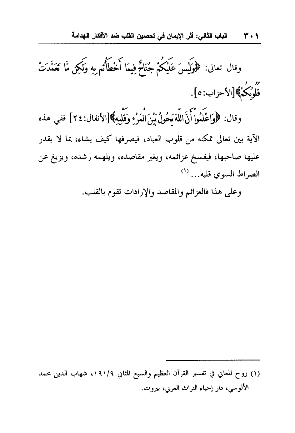 1 روح المعاني في تفسير القرآن العظيم والسبع المثاني 9/191، شهاب الدين محمد الألوسي، دار إحياء التراث العربي، بيروت.