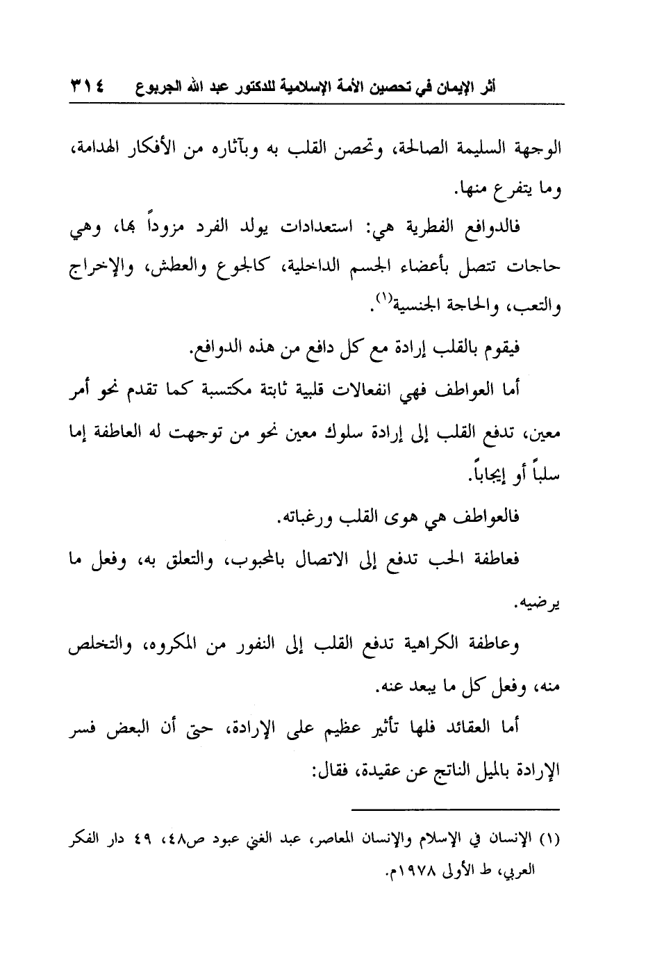 1 الإنسان في الإسلام والإنسان المعاصر، عبد الغني عبود ص48، 49 دار الفكر العربي، ط الأولى 1978م.