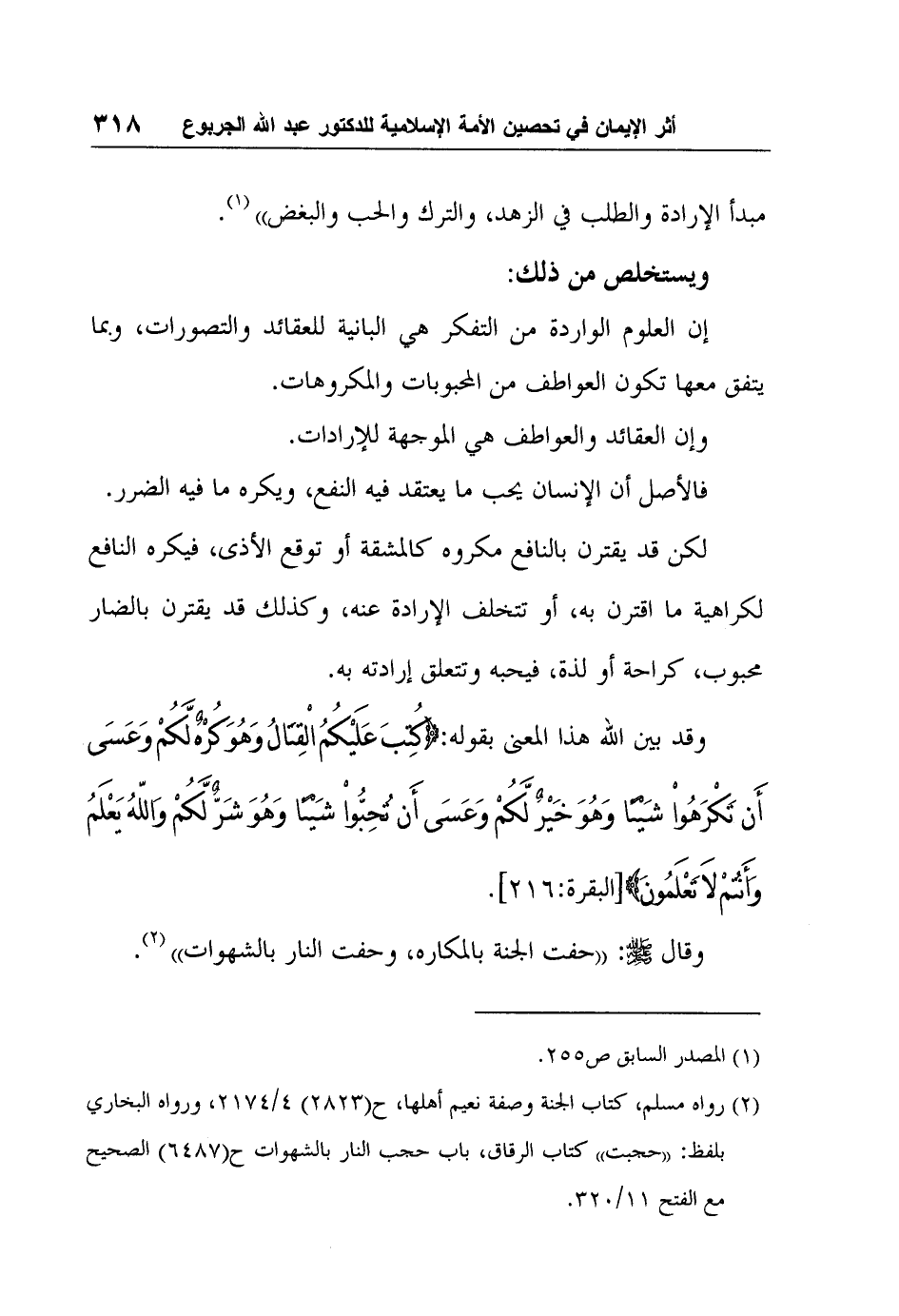 2 رواه مسلم، كتاب الجنة وصفة نعيم أهلها، ح2823 4/2174، ورواه البخاري بلفظ: "حجبت" كتاب الرقاق، باب حجب النار بالشهوات ح6487 الصحيح مع الفتح 11/320.