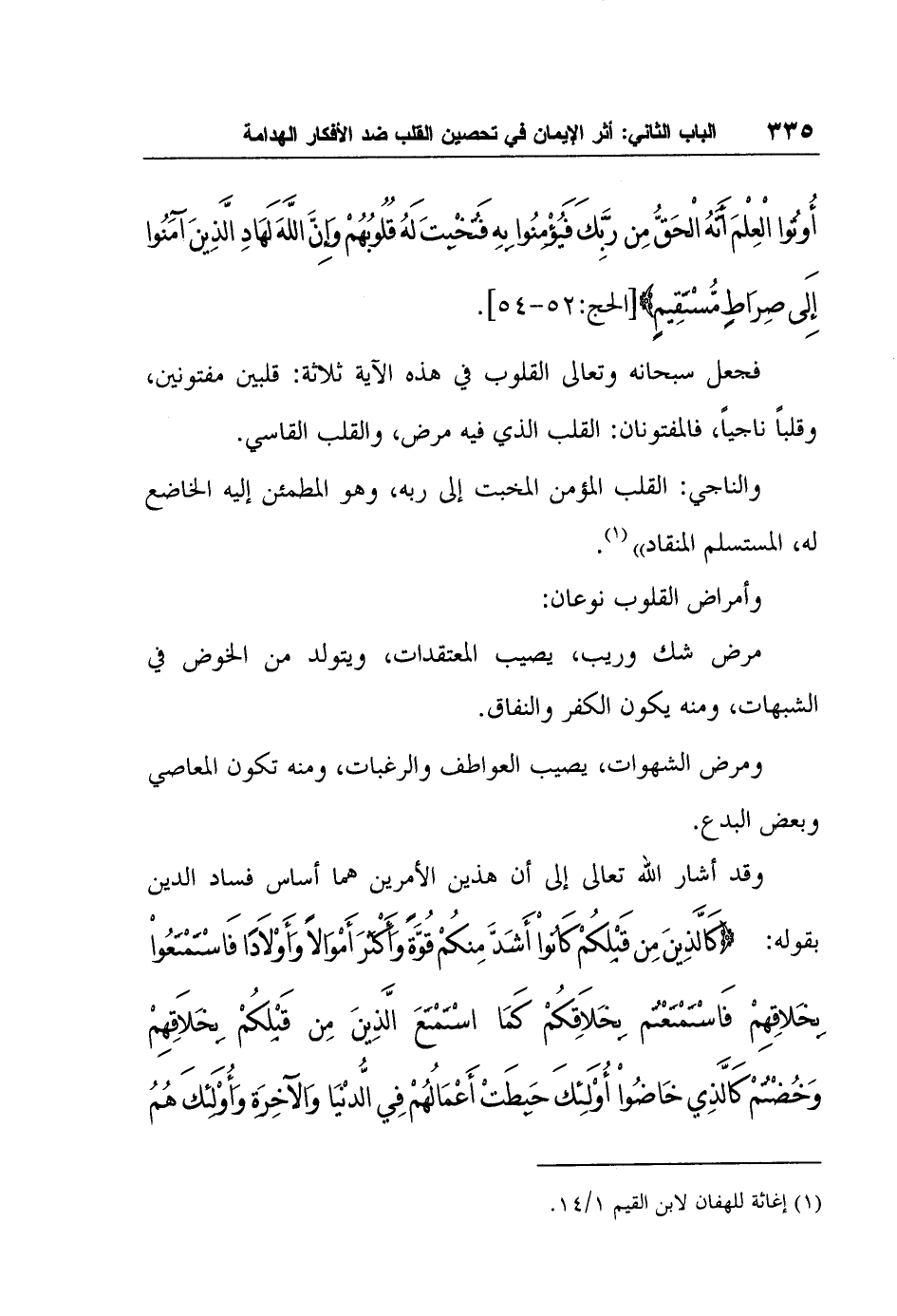 فجعل سبحانه وتعالى القلوب في هذه الآية ثلاثة: قلبين مفتونين، وقلباً ناجياً، فالمفتونان: القلب الذي فيه مرض، والقلب القاسي.