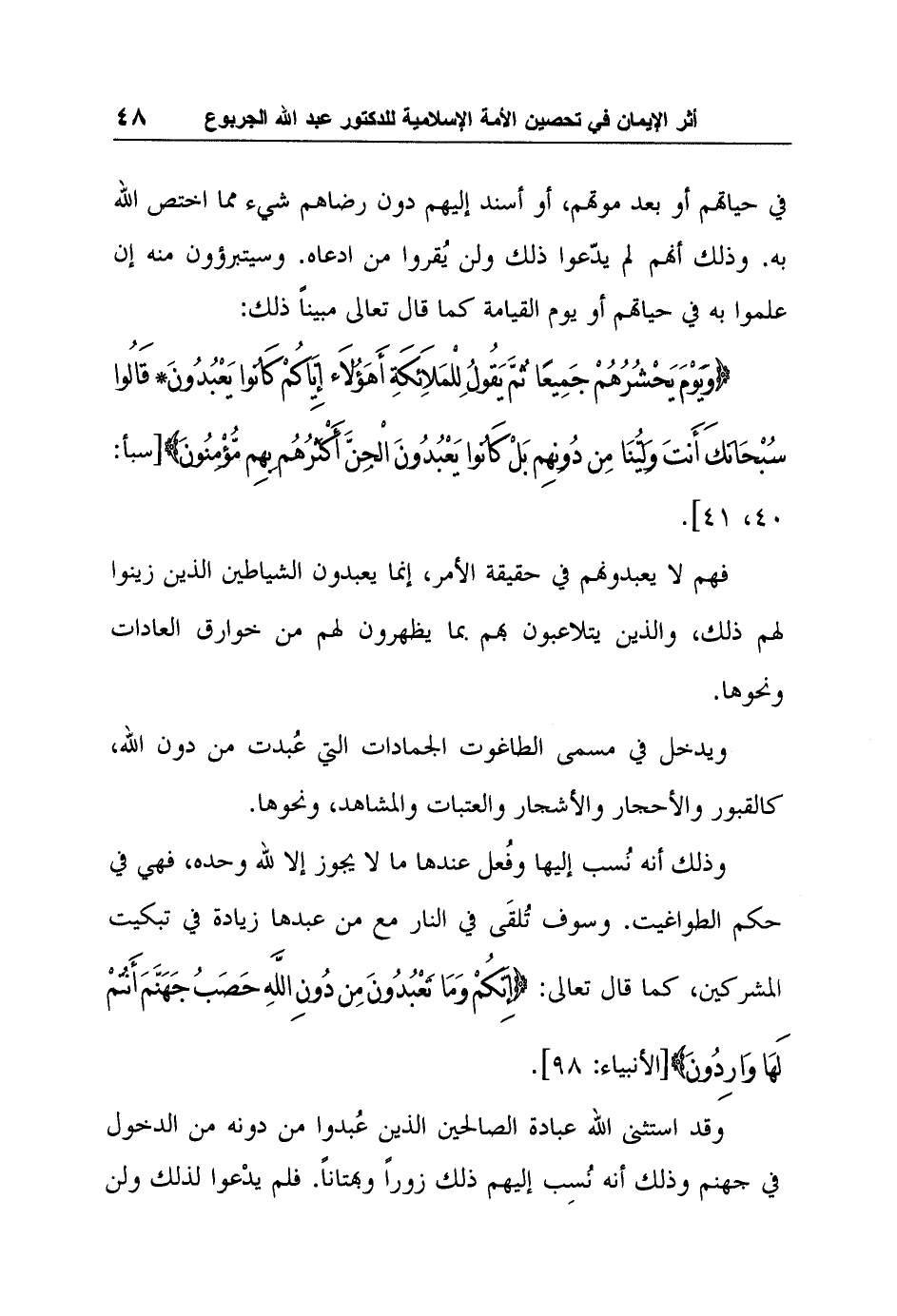كتاب أثر الإيمان في تحصين الأمة الإسلامية ضد الأفكار الهدامة