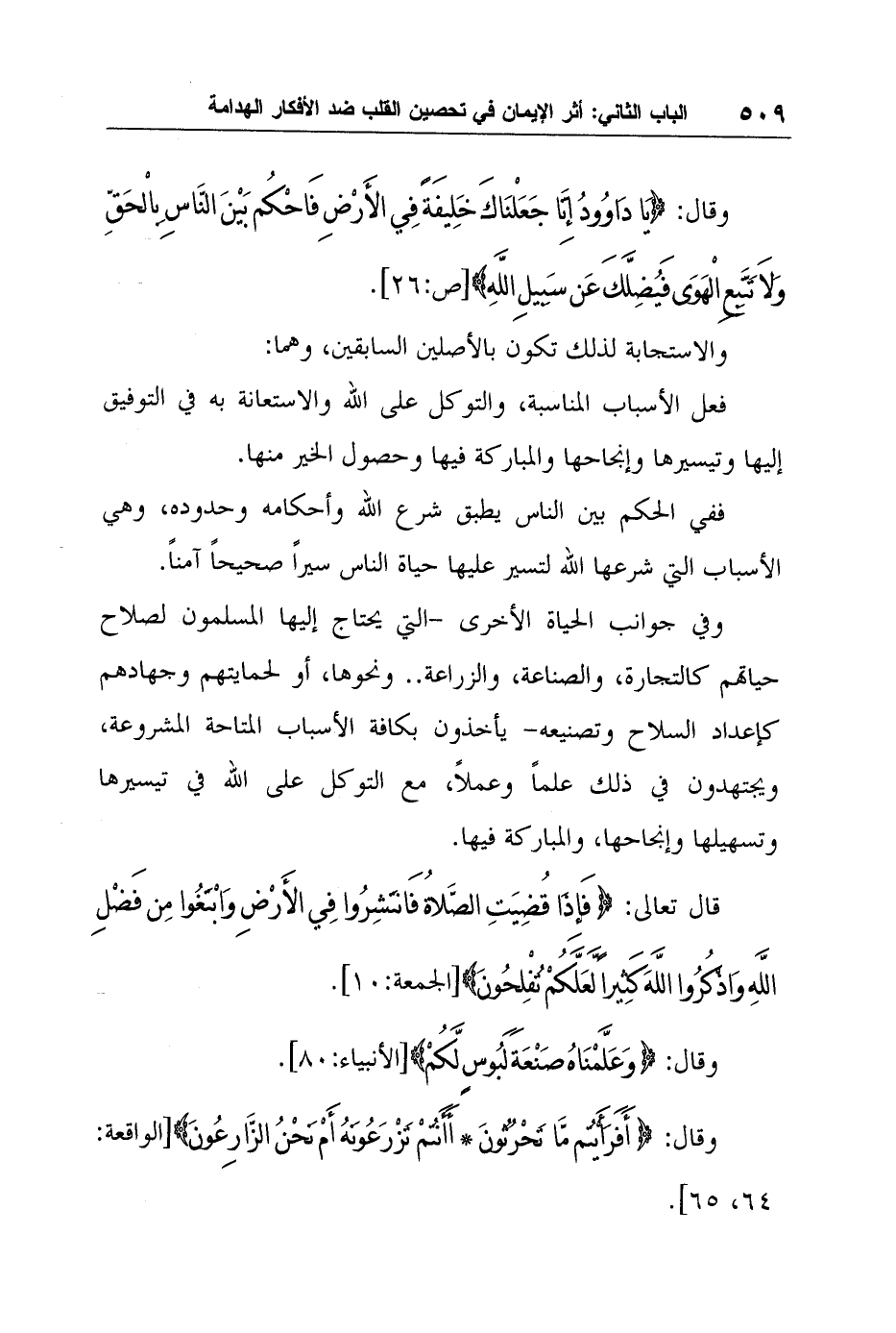 وقال: {يَا دَاوُدُ إِنَّا جَعَلْنَاكَ خَلِيفَةً فِي الْأَرْضِ فَاحْكُمْ بَيْنَ النَّاسِ بِالْحَقِّ وَلا تَتَّبِعِ الْهَوَى فَيُضِلَّكَ عَنْ سَبِيلِ اللَّهِ} [ص:26] .