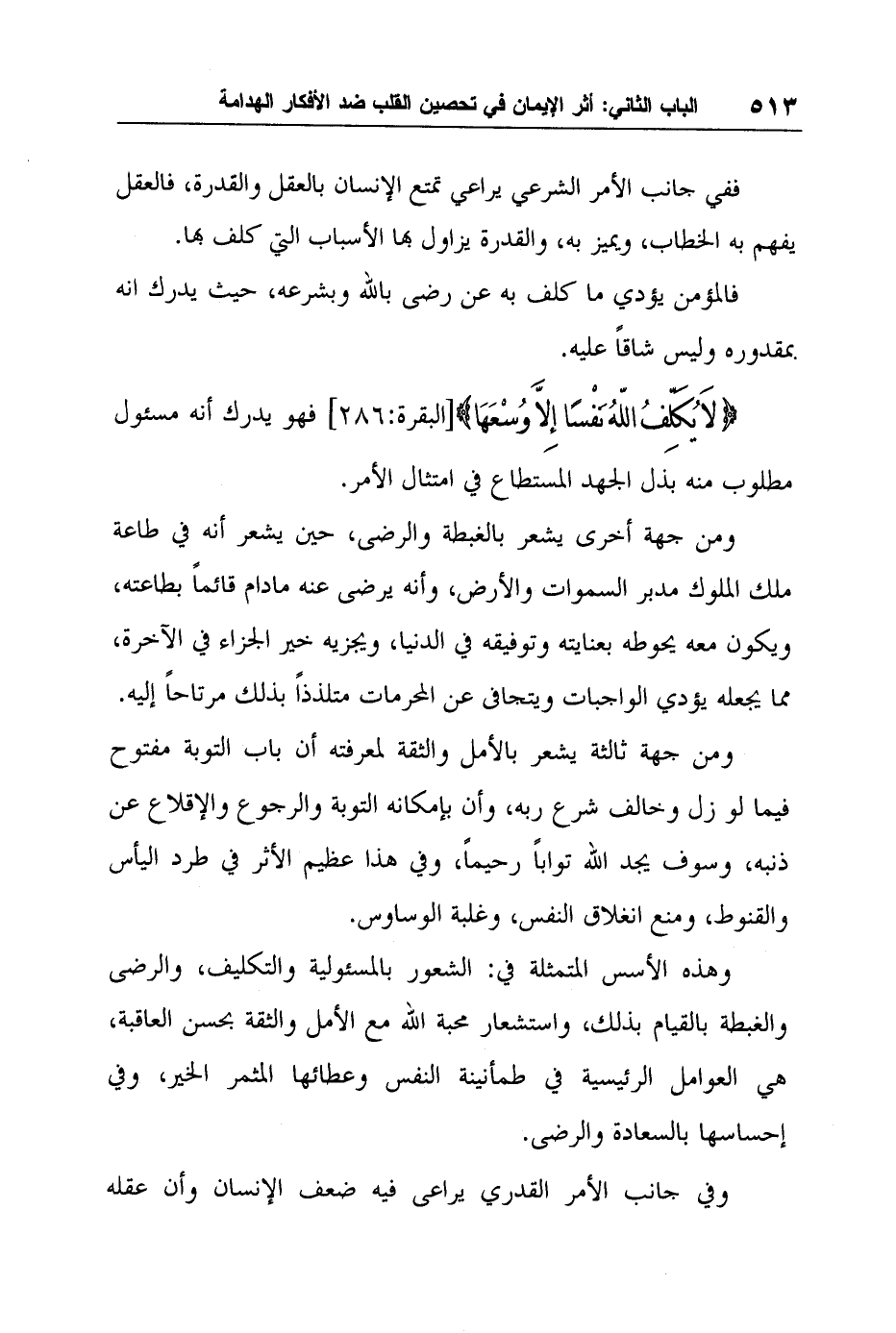 فالمؤمن يؤدي ما كلف به عن رضى بالله وبشرعه، حيث يدرك انه بمقدوره وليس شاقاً عليه.