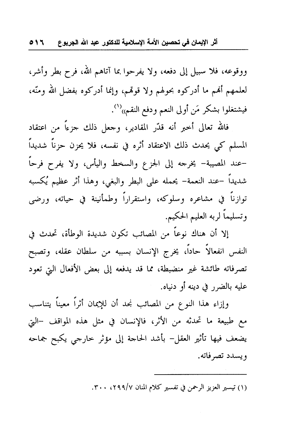 1 تيسير العزيز الرحمن في تفسير كلام المنان 7/299، 300.