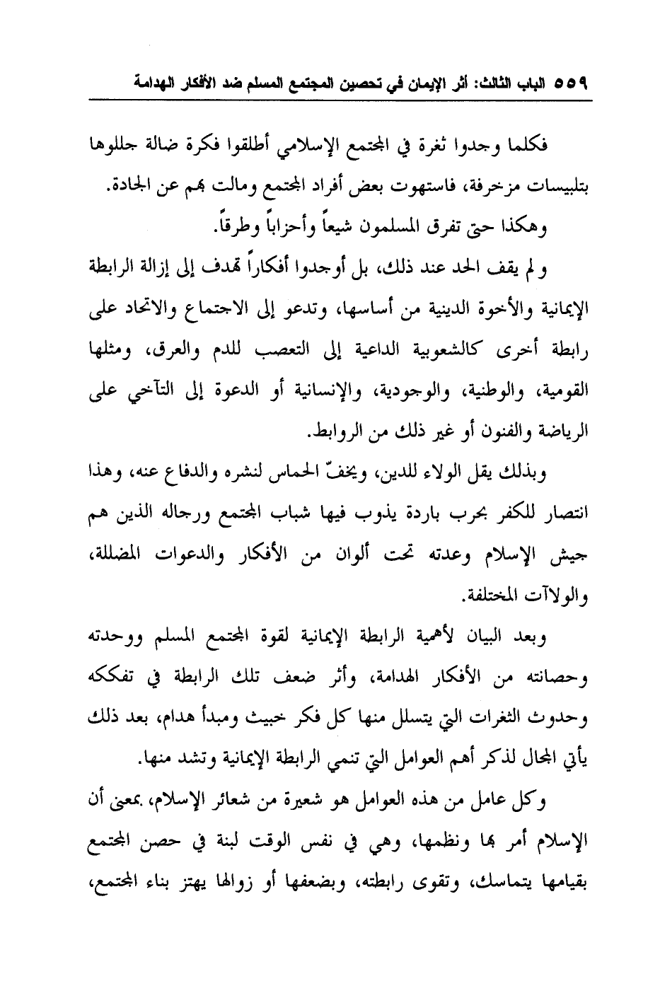 كتاب أثر الإيمان في تحصين الأمة الإسلامية ضد الأفكار الهدامة