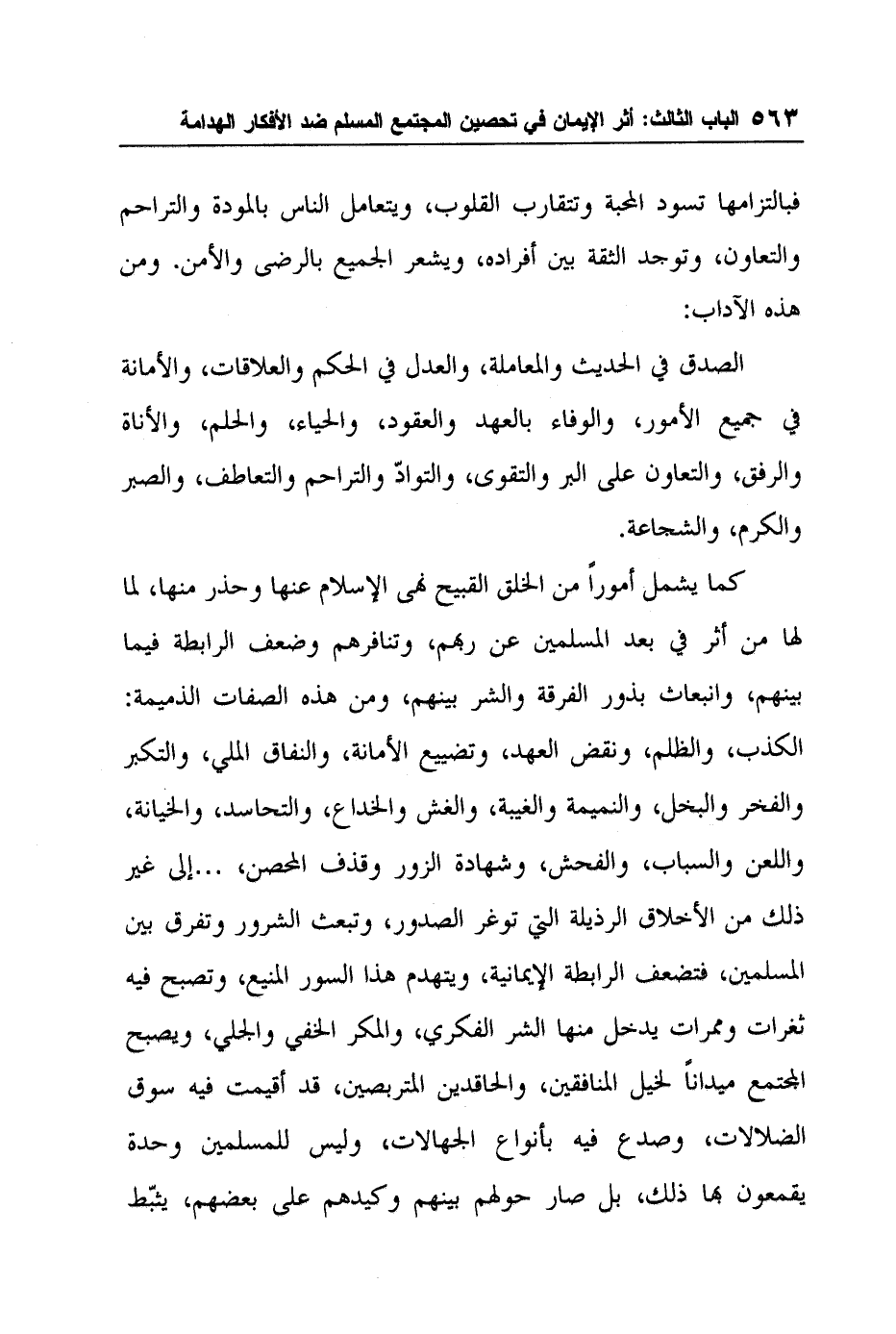 كتاب أثر الإيمان في تحصين الأمة الإسلامية ضد الأفكار الهدامة