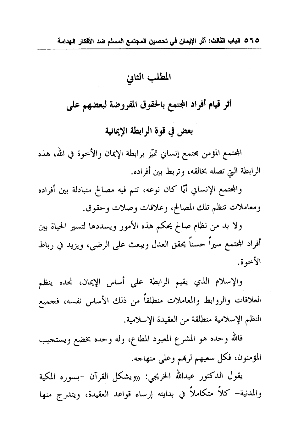 المطلب الثاني: أثر قيام أفراد المجتمع بالحقوق المفروضة لبعضهم على بعض في قوة الرابطة الإيمانية