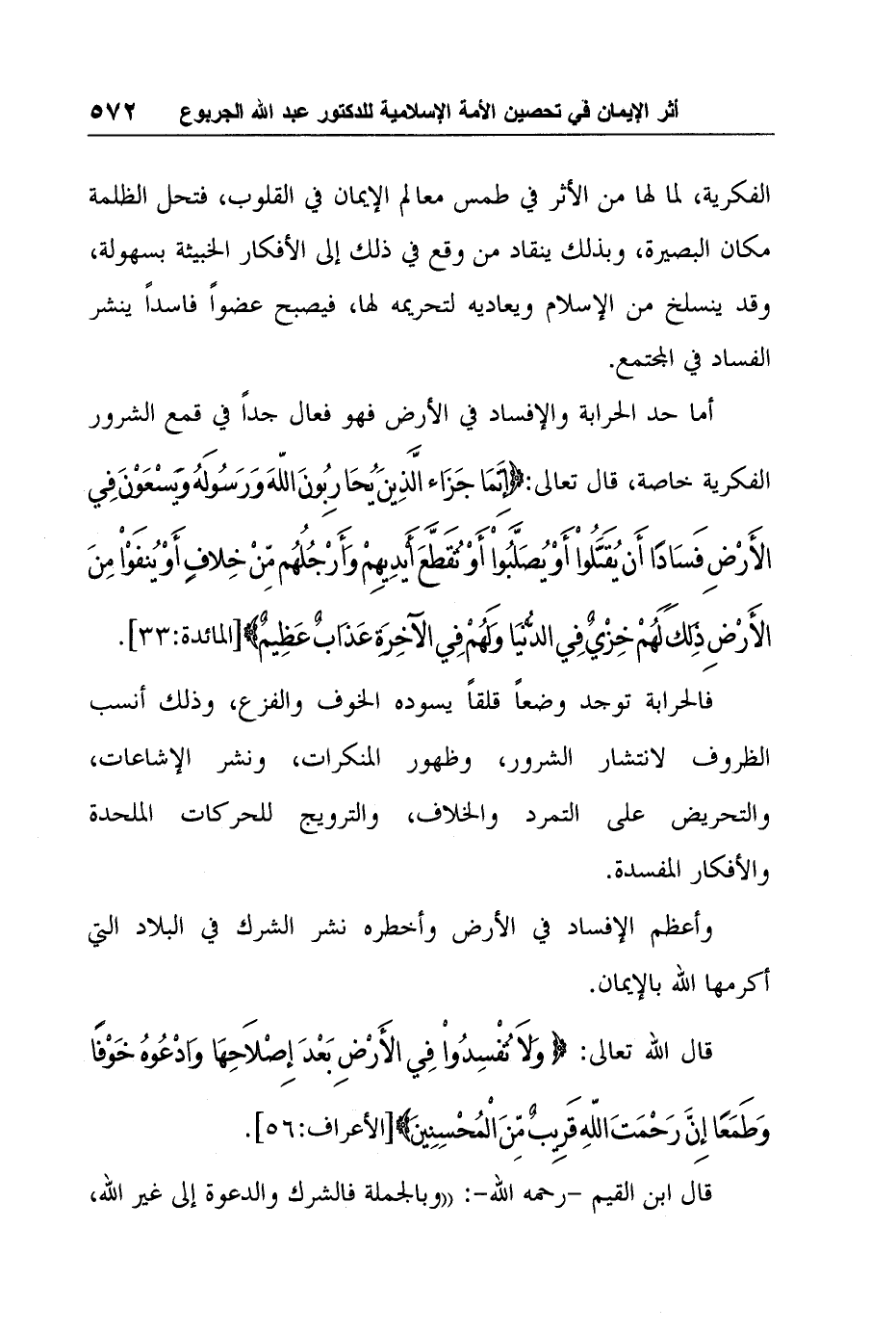 كتاب أثر الإيمان في تحصين الأمة الإسلامية ضد الأفكار الهدامة