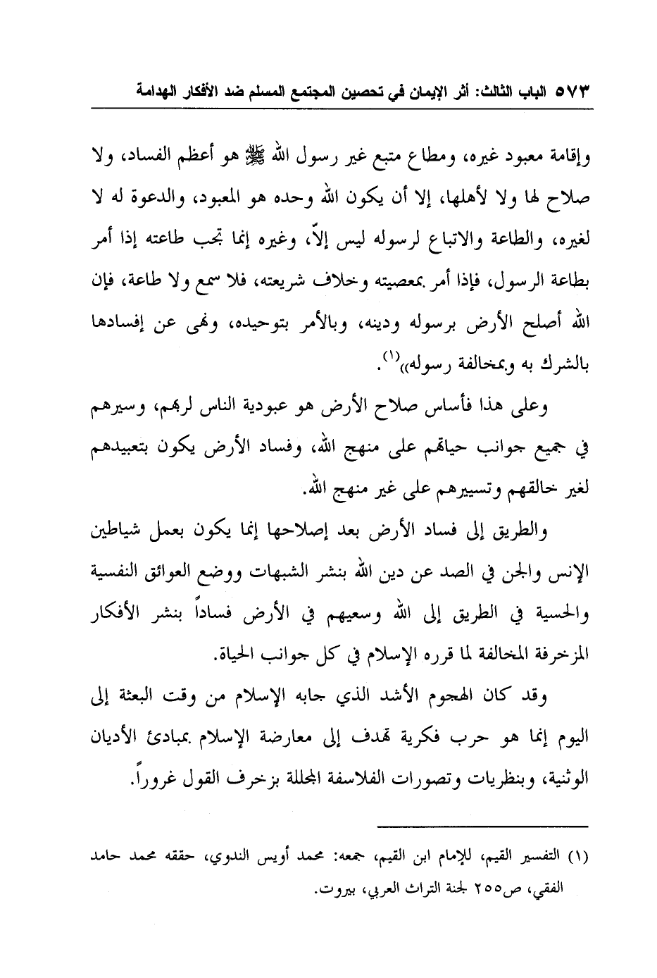 1 التفسير القيم، للإمام ابن القيم، جمعه: محمد أويس الندوي، حققه محمد حامد الفقي، ص255 لجنة التراث العربي، بيروت.