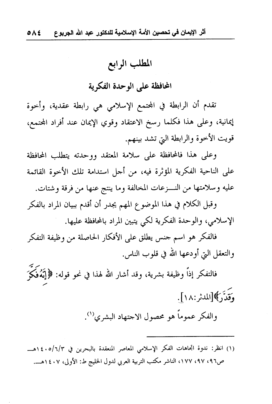1 انظر: ندوة اتجاهات الفكر الإسلامي المعاصر المنعقدة بالبحرين في 3/6/1405هـ ص96، 97، 177، الناشر مكتب التربية العربي لدول الخليج ط: الأولى، 1407هـ.