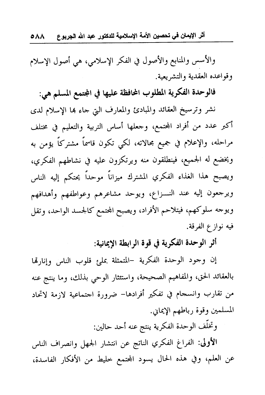 كتاب أثر الإيمان في تحصين الأمة الإسلامية ضد الأفكار الهدامة