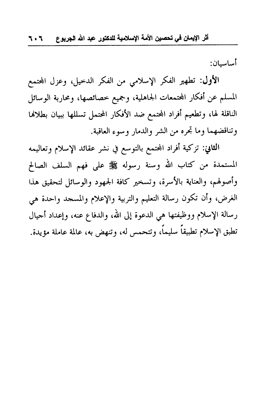 كتاب أثر الإيمان في تحصين الأمة الإسلامية ضد الأفكار الهدامة