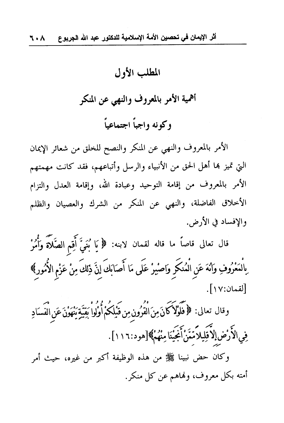 المطلب الأول:أهمية الأمر بالمعروف والنهي عن المنكر وكونه واجباً اجتماعياً