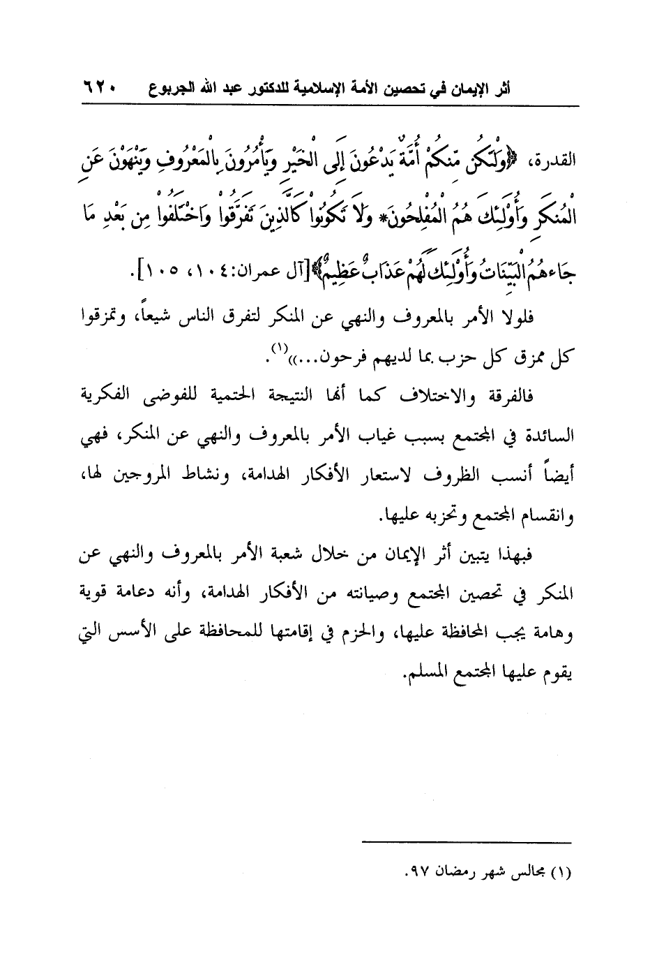كتاب أثر الإيمان في تحصين الأمة الإسلامية ضد الأفكار الهدامة