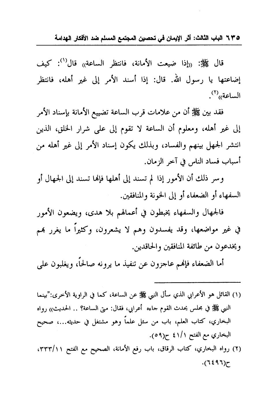 2 رواه البخاري، كتاب الرقاق، باب رفع الأمانة، الصحيح مع الفتح 11/333،ح6496.