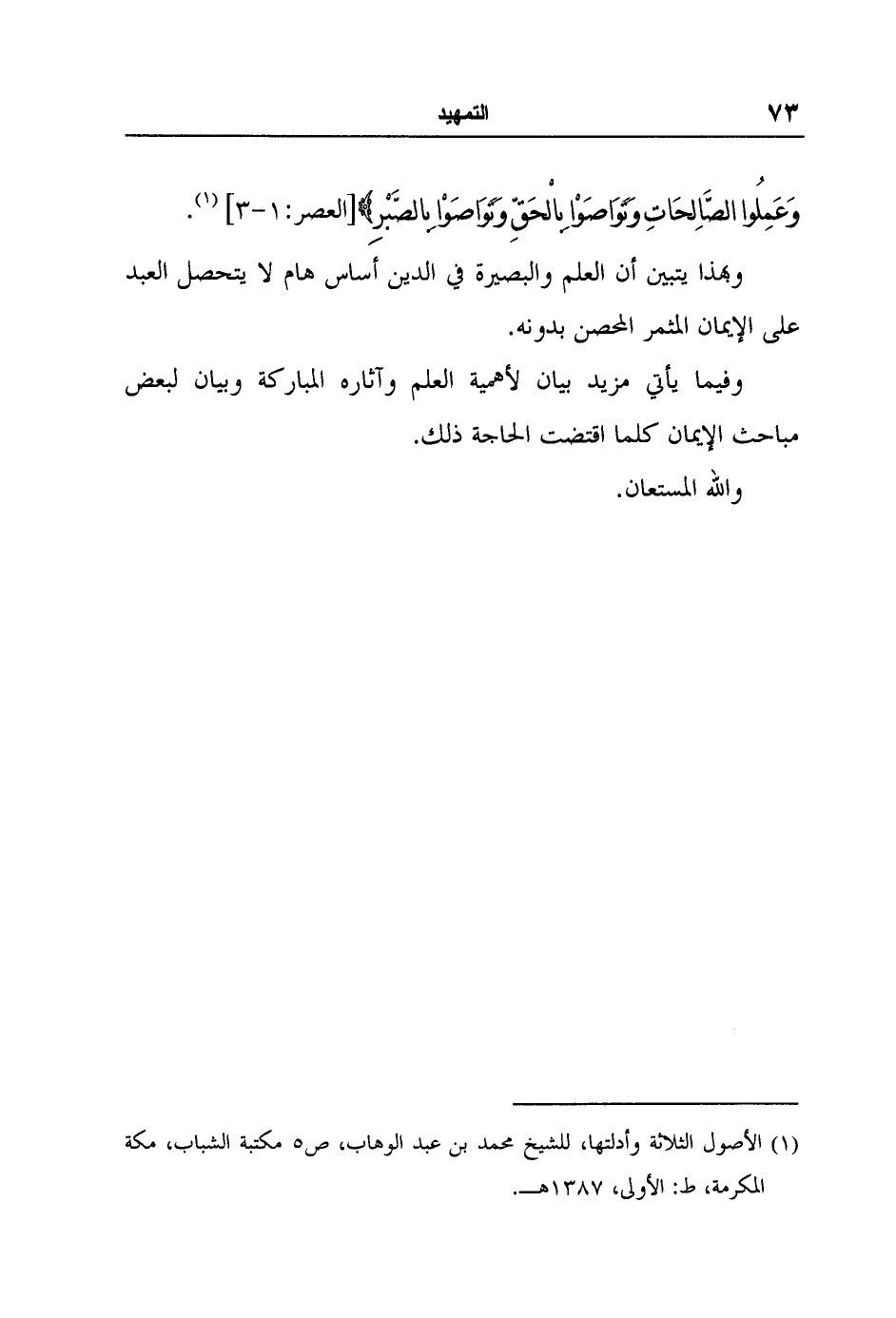 1 الأصول الثلاثة وأدلتها، للشيخ محمد بن عبد الوهاب، ص5 مكتبة الشباب، مكة المكرمة، ط: الأولى، 1387هـ.