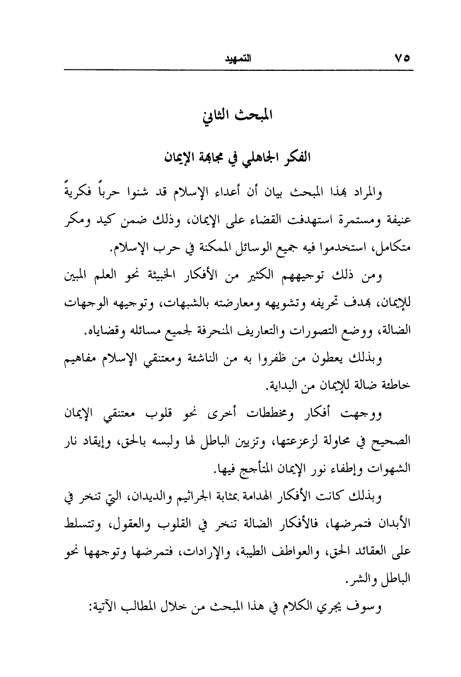 المبحث الثاني: الفكر الجاهلي في مجابهة الإيمان