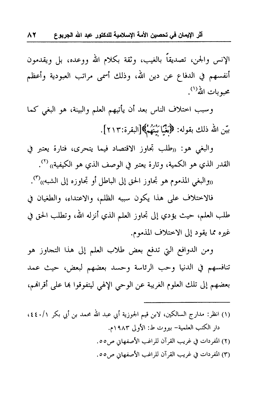 "والبغي المذموم هو تجاوز الحق إلى الباطل أو تجاوزه إلى الشبه"3.