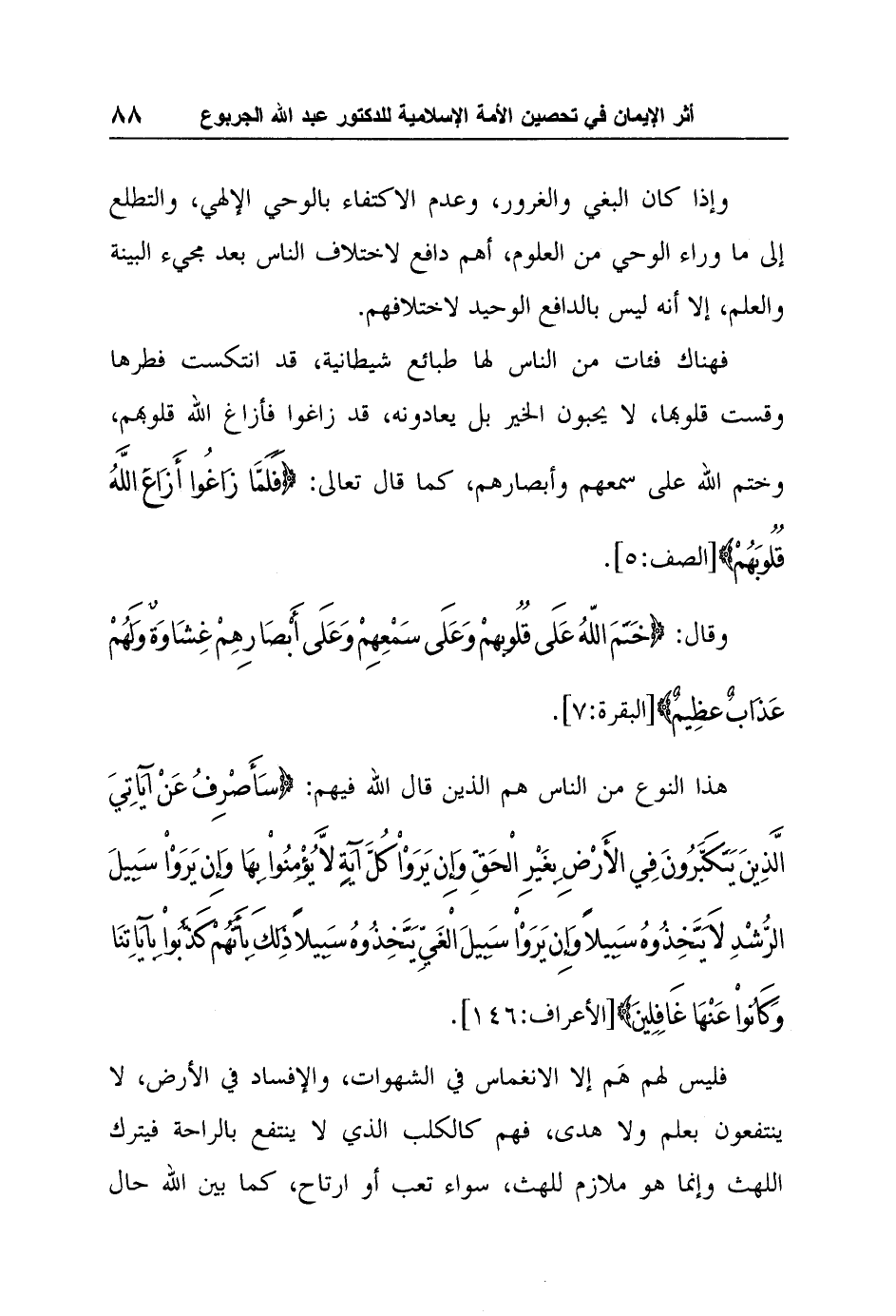 كتاب أثر الإيمان في تحصين الأمة الإسلامية ضد الأفكار الهدامة