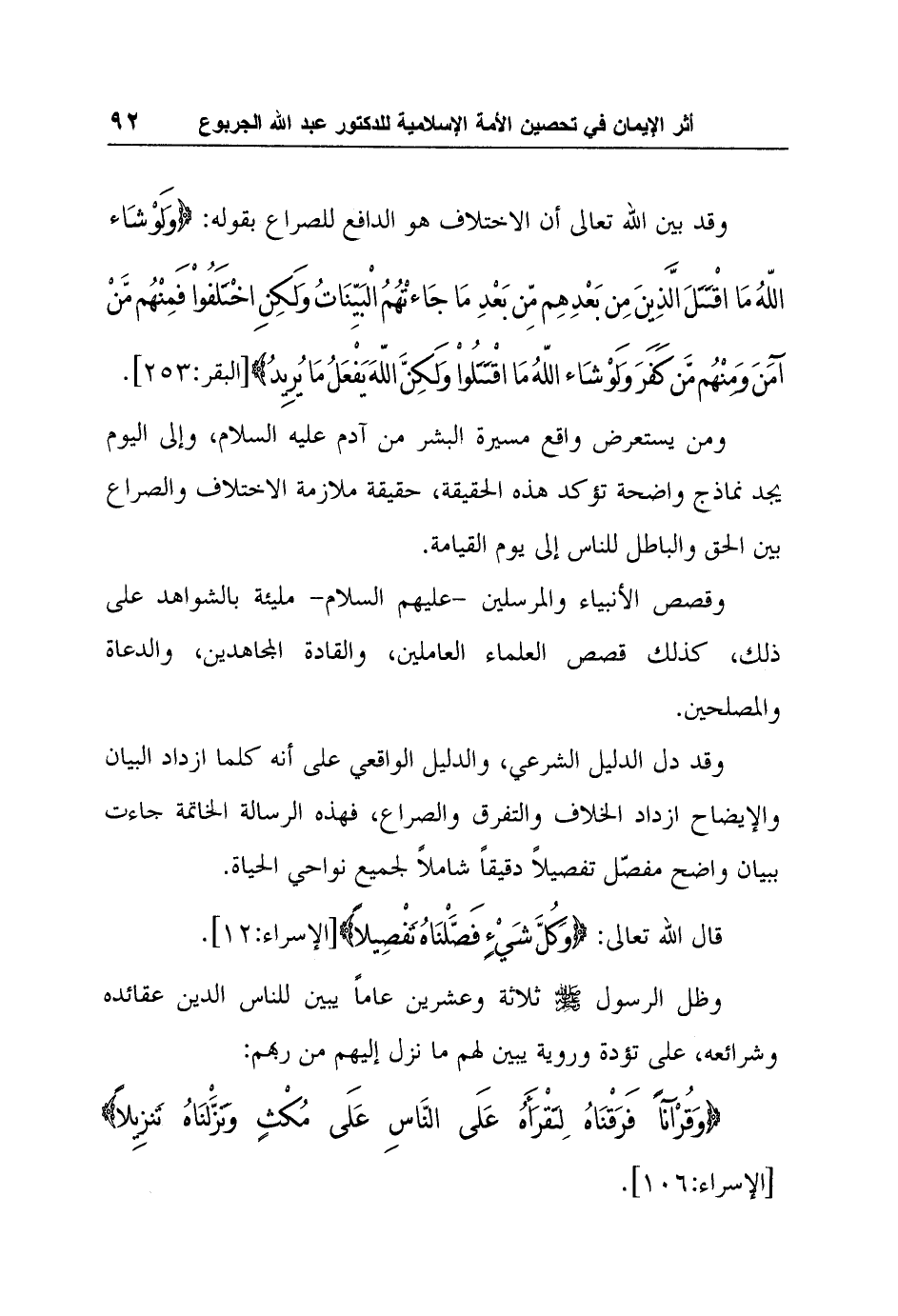 كتاب أثر الإيمان في تحصين الأمة الإسلامية ضد الأفكار الهدامة