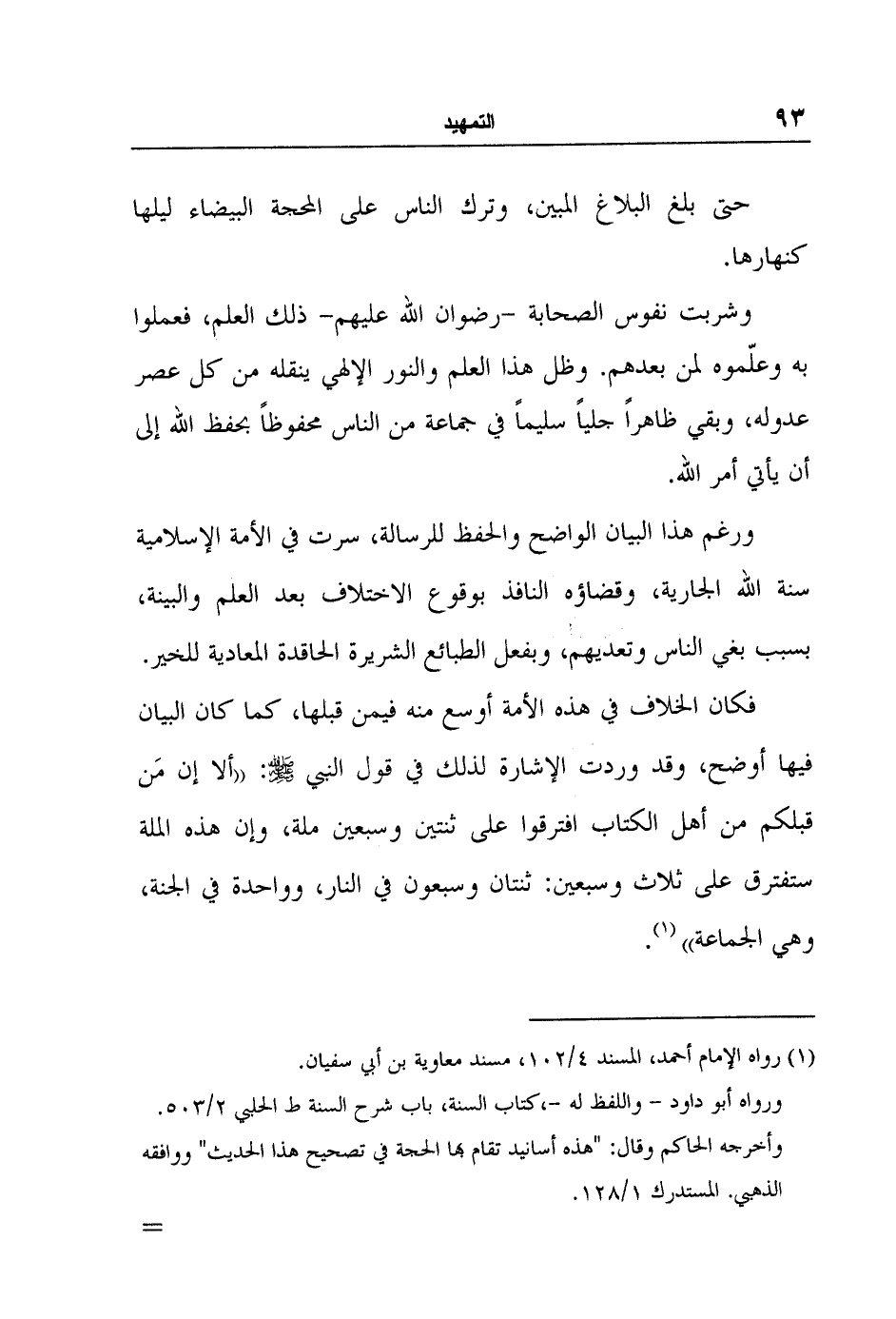 فكان الخلاف في هذه الأمة أوسع منه فيمن قبلها، كما كان البيان فيها أوضح، وقد وردت الإشارة لذلك في قول النبي صلى الله عليه وسلم: " ألا إن مَن قبلكم من أهل الكتاب افترقوا على ثنتين وسبعين ملة، وإن هذه الملة ستفترق على ثلاث وسبعين: ثنتان وسبعون في النار، وواحدة في الجنة، وهي الجماعة " 1.