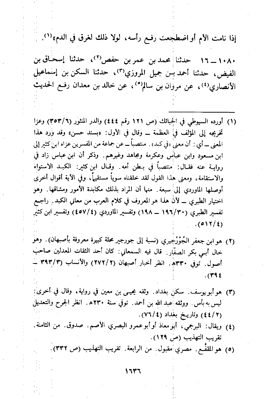 1080161616 - حَدَّثَنَا مُحَمَّدُ بْنُ عُمَرَ بْنِ حَفْصٍ، حَدَّثَنَا إِسْحَاقُ بْنُ الْفَيْضِ، حَدَّثَنَا أَحْمَدُ بْنُ جَمِيلٍ الْمَرْوَزِيُّ، حَدَّثَنَا السَّكَنُ بْنُ إِسْمَاعِيلَ الْأَنْصَارِيُّ، عَنْ مَرْوَانَ بْنِ سَالِمٍ، عَنْ خَالِدِ بْنِ مَعْدَانَ، رَفَعَ الْحَدِيثَ