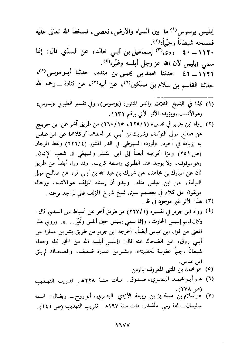 حَدَّثَنَا مُحَمَّدُ بْنُ يَحْيَى بْنِ مَنْدَهْ، حَدَّثَنَا أَبُو مُوسَى، حَدَّثَنَا الْقَاسِمُ بْنُ سَلَامِ بْنِ مِسْكِينٍ، عَنْ أَبِيهِ، عَنْ قَتَادَةَ رَحِمَهُ اللَّهُ -[1678]- تَعَالَى {إِلَّا إِبْلِيسَ كَانَ مِنَ الْجِنِّ} [الكهف: 50] قَالَ: §أَجَنَّ عَنْ طَاعَةِ اللَّهِ تَعَالَى "