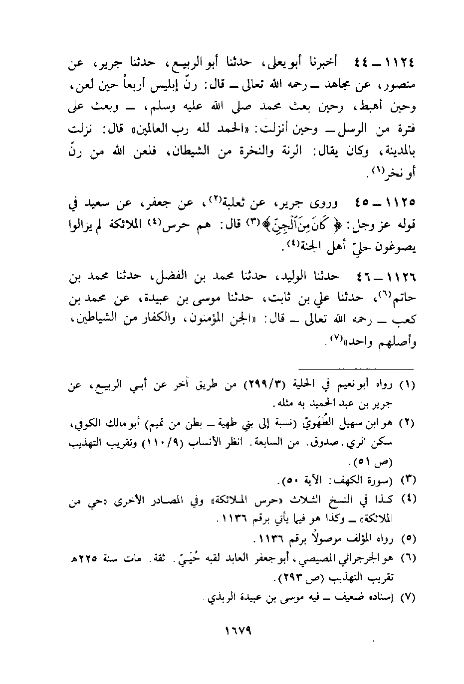 1125454545 - وَرَوَى جَرِيرٌ، عَنْ ثَعْلَبَةَ، عَنْ جَعْفَرٍ، عَنْ سَعِيدٍ فِي قَوْلِهِ عَزَّ وَجَلَّ {كَانَ مِنَ الْجِنِّ} [الكهف: 50] قَالَ: §«هُمْ حَرَسُ الْمَلَائِكَةِ لَمْ يَزَالُوا يَصُوغُونَ حُلِيَّ أَهْلِ الْجَنَّةِ»