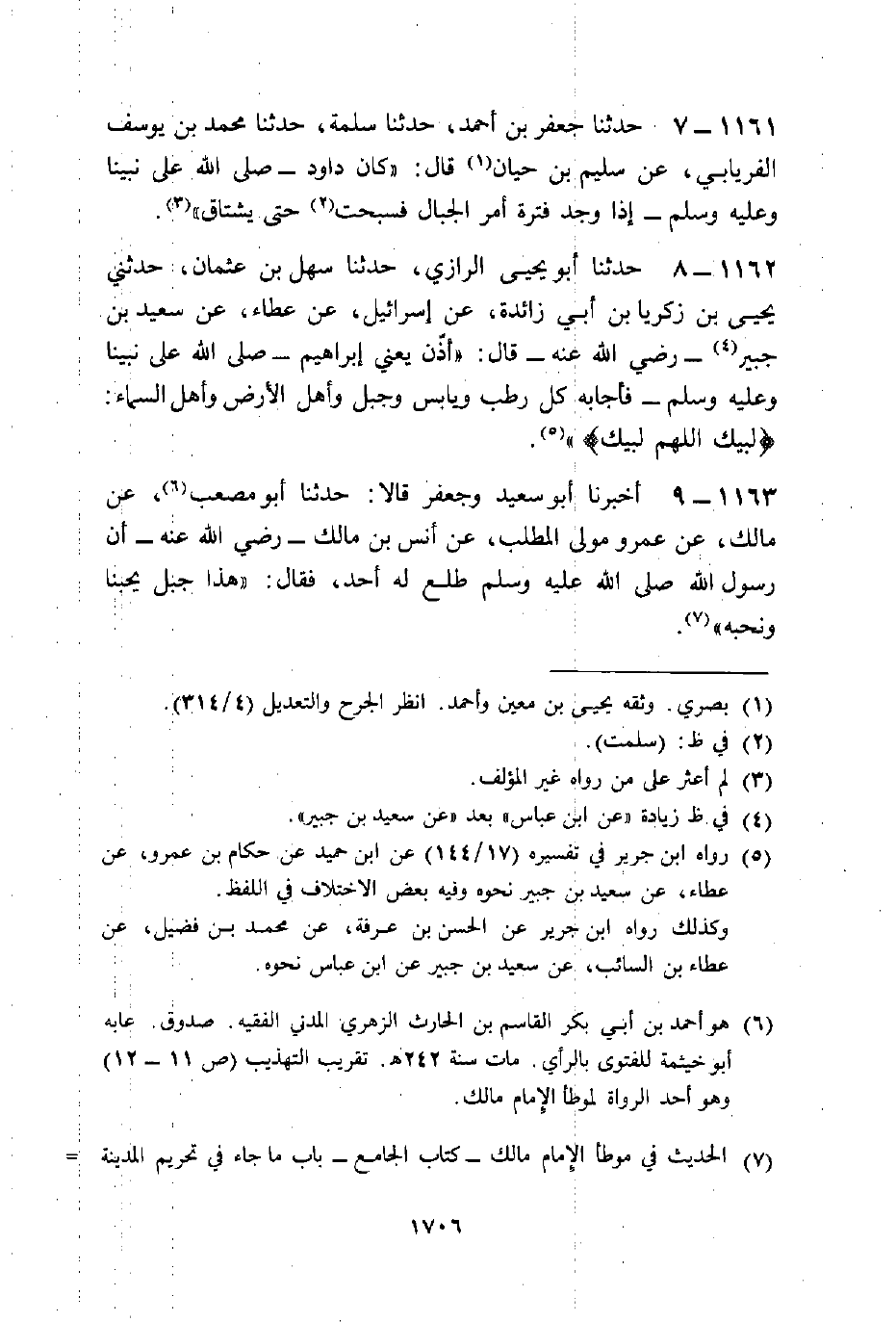 أَخْبَرَنَا أَبُو سَعِيدٍ، وَجَعْفَرٌ قَالَا: حَدَّثَنَا أَبُو مُصْعَبٍ، عَنْ مَالِكٍ، عَنْ عَمْرٍو مَوْلَى الْمُطَّلِبِ، عَنْ أَنَسِ بْنِ مَالِكٍ رَضِيَ اللَّهُ عَنْهُ، أَنَّ رَسُولَ اللَّهِ صَلَّى اللهُ عَلَيْهِ وَسَلَّمَ طَلَعَ لَهُ أُحُدٌ فَقَالَ: §«هَذَا جَبَلٌ يُحِبُّنَا وَنُحِبُّهُ»