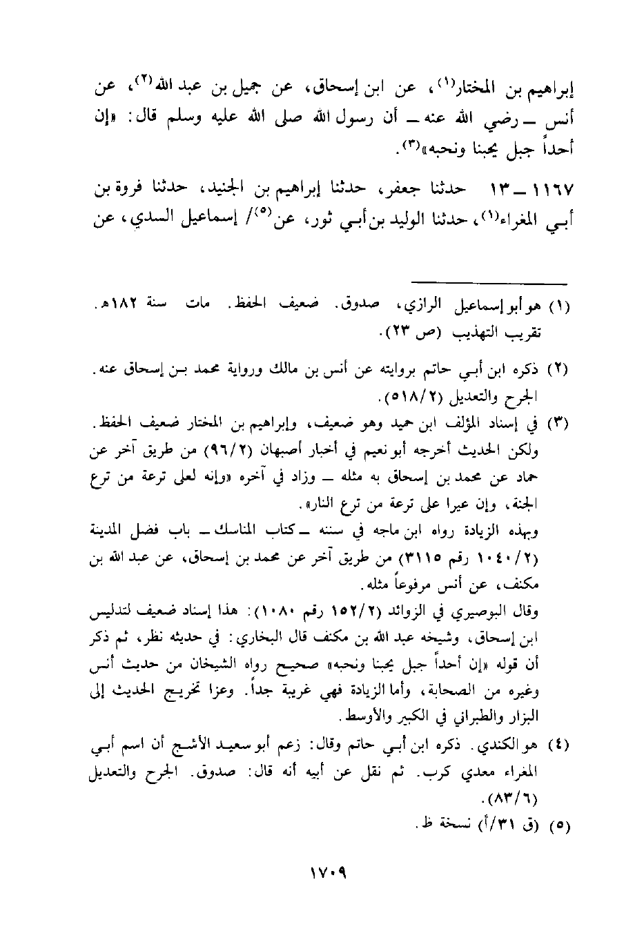 حَدَّثَنَا جَعْفَرٌ، حَدَّثَنَا إِبْرَاهِيمُ بْنُ الْجُنَيْدِ، حَدَّثَنَا فَرْوَةُ بْنُ أَبِي الْمَغْرَاءِ، حَدَّثَنَا الْوَلِيدُ بْنُ أَبِي ثَوْرٍ، عَنْ إِسْمَاعِيلَ السُّدِّيِّ، عَنْ -[1710]- عَبَّادِ بْنِ أَبِي يَزِيدَ، عَنْ عَلِيِّ بْنِ أَبِي طَالِبٍ رَضِيَ اللَّهُ عَنْهُ قَالَ: كُنَّا مَعَ رَسُولِ اللَّهِ صَلَّى اللهُ عَلَيْهِ وَسَلَّمَ بِمَكَّةَ فَخَرَجْنَا مَعَهُ فِي بَعْضِ نَوَاحِيهَا بَيْنَ الْجِبَالِ وَالشَّجَرِ فَلَمْ نَمُرَّ بِجَبَلٍ وَلَا شَجَرٍ إِلَّا قَالَ: §«السَّلَامُ عَلَيْكَ يَا رَسُولَ اللَّهِ»