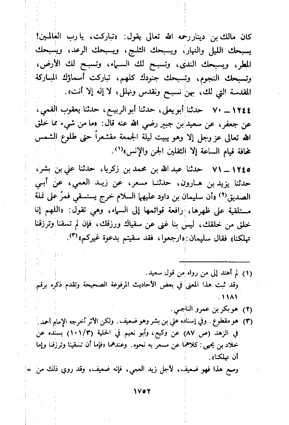 حَدَّثَنَا أَبُو يَعْلَى، حَدَّثَنَا أَبُو الرَّبِيعِ، حَدَّثَنَا يَعْقُوبُ الْقُمِّيُّ، عَنْ جَعْفَرٍ، عَنْ سَعِيدِ بْنِ جُبَيْرٍ رَضِيَ اللَّهُ عَنْهُ قَالَ: §«مَا مِنْ شَيْءٍ مِمَّا خَلَقَ اللَّهُ تَعَالَى عَزَّ وَجَلَّ إِلَّا وَهُوَ يَبِيتُ لَيْلَةَ الْجُمُعَةِ مُقْشَعِرًّا حَتَّى طُلُوعِ الشَّمْسِ مَخَافَةَ قِيَامِ السَّاعَةِ إِلَّا الثَّقَلَيْنِ الْجِنَّ وَالْإِنْسَ»