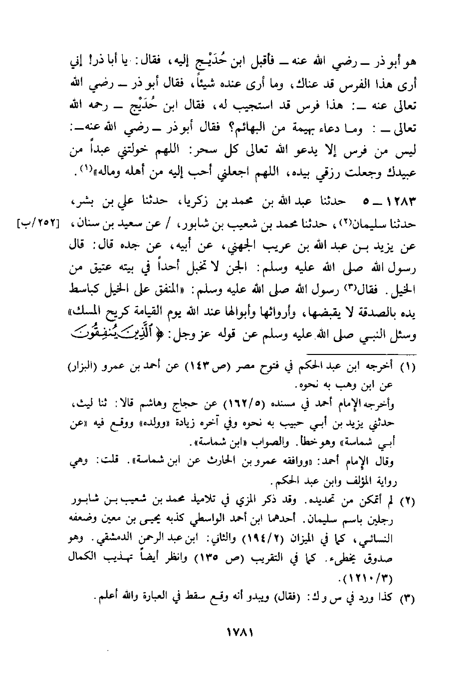 -[1782]- قَالَ: «هُمْ أَصْحَابُ الْخَيْلِ» حَدَّثَنَا بَنَانُ بْنُ أَحْمَدَ، حَدَّثَنَا دَاوُدُ بْنُ رُشَيْدٍ، حَدَّثَنَا أَبُو حَيَوَةَ شُرَيْحُ بْنُ يَزِيدَ، عَنْ سَعِيدِ بْنِ سِنَانٍ، مِثْلَهُ