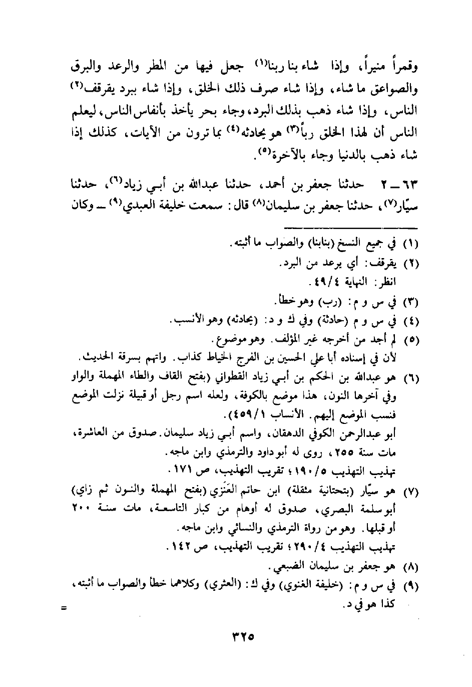 63 - حَدَّثَنَا جَعْفَرُ بْنُ أَحْمَدَ، حَدَّثَنَا عَبْدُ اللَّهِ بْنُ أَبِي زِيَادٍ، حَدَّثَنَا سَيَّارٌ، حَدَّثَنَا جَعْفَرُ بْنُ سُلَيْمَانَ قَالَ: سَمِعْتُ خَلِيفَةَ الْعَبْدِيَّ، وَكَانَ -[326]- مُتَعَبِّدًا، يَقُولُ: §لَوْ أَنَّ اللَّهَ تَبَارَكَ وَتَعَالَى لَمْ يُعْبَدْ إِلَّا عَنْ رُؤْيَةٍ مَا عَبَدُهُ أَحَدٌ، وَلَكِنَّ الْمُؤْمِنِينَ تَفَكَّرُوا فِي مَجِيءِ هَذَا اللَّيْلِ إِذَا جَاءَ فَمَلَأَ كُلَّ شَيْءٍ، وَغَطَّى كُلَّ شَيْءٍ، وَفِي مَجِيءِ سُلْطَانِ النَّهَارِ إِذَا جَاءَ فَمَحَا سُلْطَانَ اللَّيْلِ، وَفِي السَّحَابِ الْمُسَخَّرِ بَيْنَ السَّمَاءَ وَالْأَرْضَ، وَفِي النُّجُومَ، وَفِي الشِّتَاءَ وَالصَّيْفِ، فَوَاللَّهِ مَا زَالَ الْمُؤْمِنُونَ يَتَفَكَّرُونَ فِيمَا خَلَقَ رَبُّهُمْ تَبَارَكَ وَتَعَالَى، حَتَّى أَيْقَنَتْ قُلُوبُهُمْ بِرَبِّهِمْ عَزَّ وَجَلَّ، وَحَتَّى كَأَنَّمَا عَبَدُوا اللَّهَ تَبَارَكَ وَتَعَالَى عَنْ رُؤْيَةٍ.