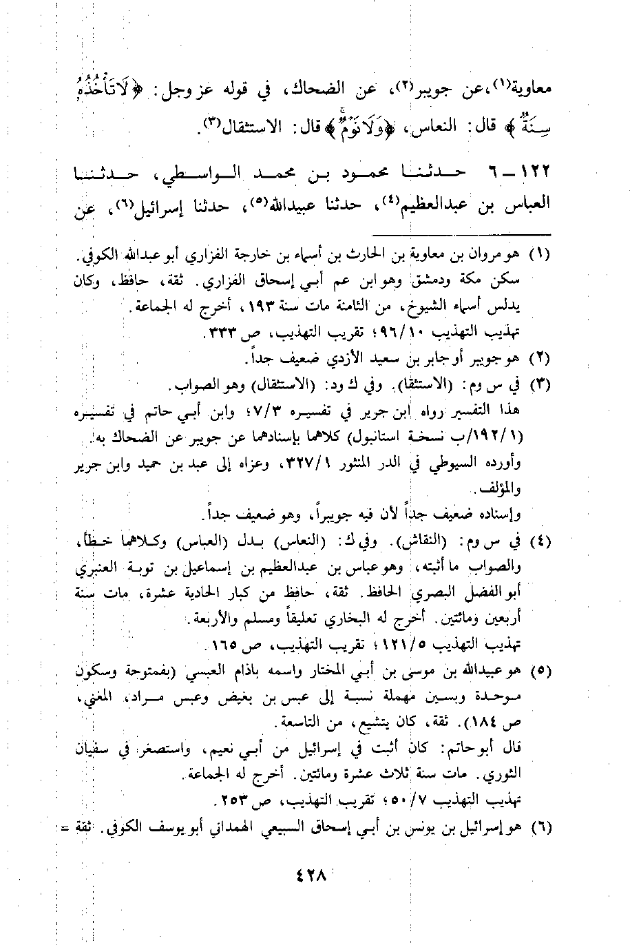 حَدَّثَنَا مَحْمُودُ بْنُ مُحَمَّدٍ الْوَاسِطِيُّ، حَدَّثَنَا الْعَبَّاسُ بْنُ عَبْدِ الْعَظِيمِ، حَدَّثَنَا عُبَيْدُ اللَّهِ، حَدَّثَنَا إِسْرَائِيلُ، عَنِ السُّدِّيِّ، عَنْ أَبِي مَالِكٍ رَحِمَهُ اللَّهُ، قَالَ: «إِنَّ الْأَرَضِينَ عَلَى حُوتٍ، وَالسِّلْسِلَةُ فِي أُذُنِ الْحُوتِ، وَالْحُوتُ فِي يَدِ اللَّهِ تَبَارَكَ وَتَعَالَى» ، وَذَلِكَ قَوْلُهُ تَعَالَى: {§إِنَّ اللَّهَ يُمْسِكُ السَّمَوَاتِ وَالْأَرْضَ أَنْ تَزُولَا}