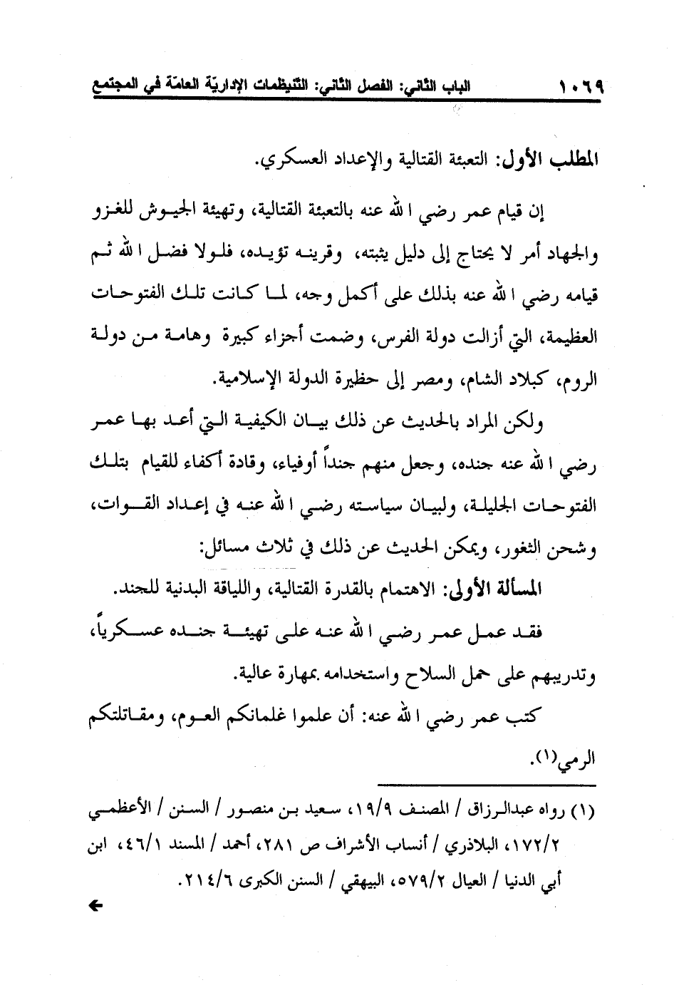 المسألة الأولى: الاهتمام بالقدرة القتالية، واللياقة البدنية للجند.