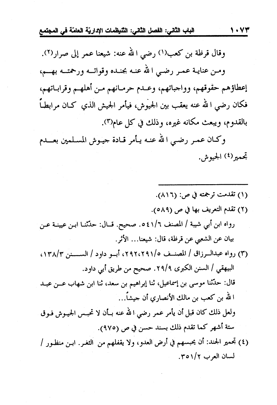 وكان عمر رضي الله عنه يأمر قادة جيوش المسلمين بعدم تجمير4 الجيوش.