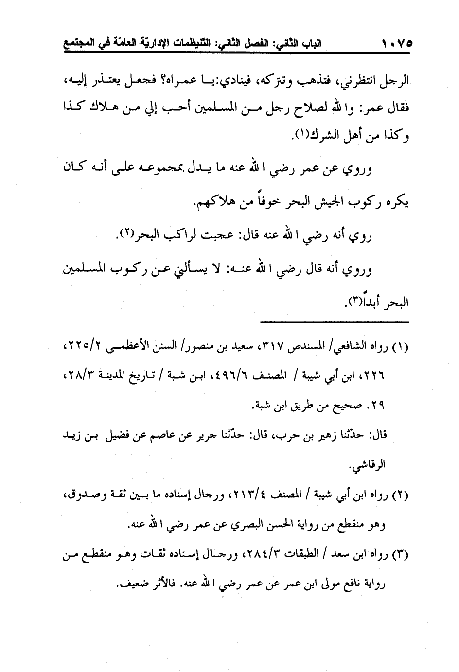 1 رواه الشافعي/ المسندص 317، سعيد بن منصور/ السنن الأعظمي 2/225، 226، ابن أبي شيبة / المصنف 6/496، ابن شبة / تاريخ المدينة 3/28، 29. صحيح من طريق ابن شبة.