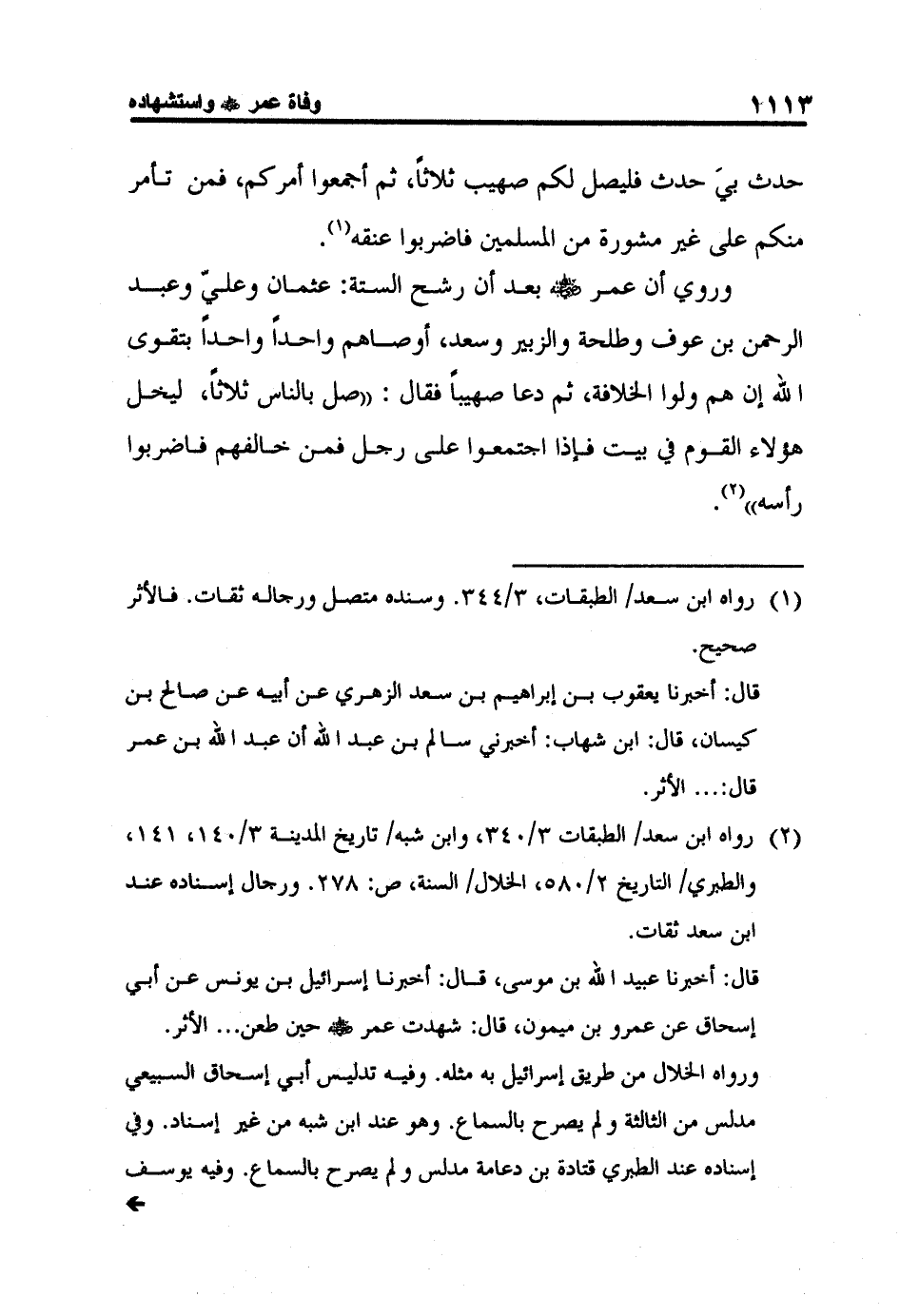 2 رواه ابن سعد/ الطبقات 3/340، وابن شبه/ تاريخ المدينة 3/140، 141، والطبري/ التاريخ 2/580، الخلال/ السنة، ص: 278. ورجال إسناده عند ابن سعد ثقات.