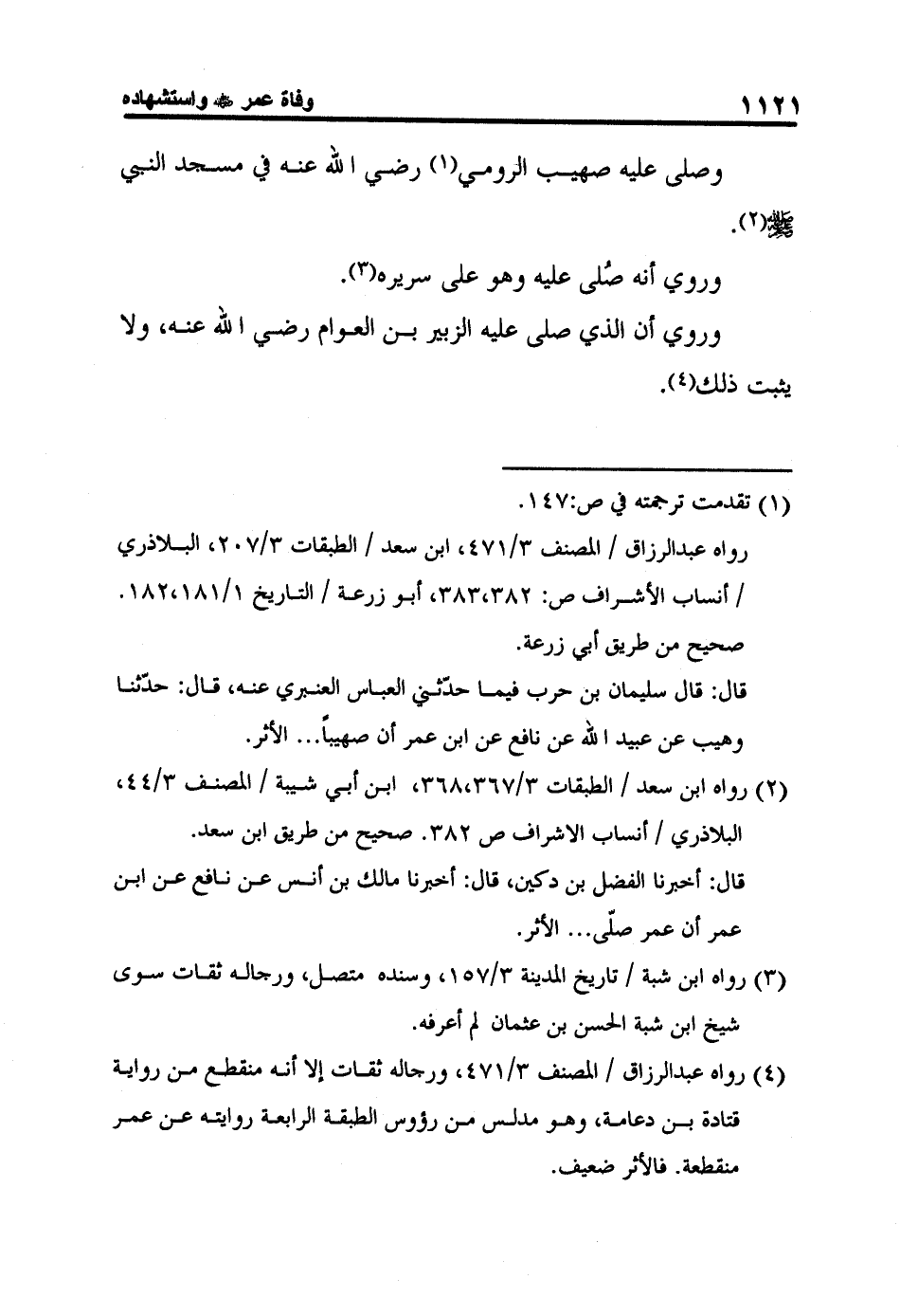 وصلى عليه صهيب الرومي1 رضي الله عنه في مسجد النبي صلى الله عليه وسلم2.