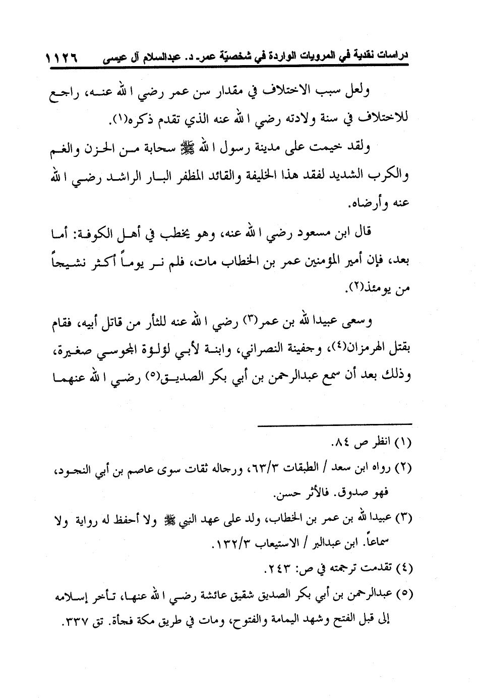 3 عبيد الله بن عمر بن الخطاب، ولد على عهد النبي صلى الله عليه وسلم ولا أحفظ له رواية ولا سماعاً. ابن عبد البر / الاستيعاب 3/132.