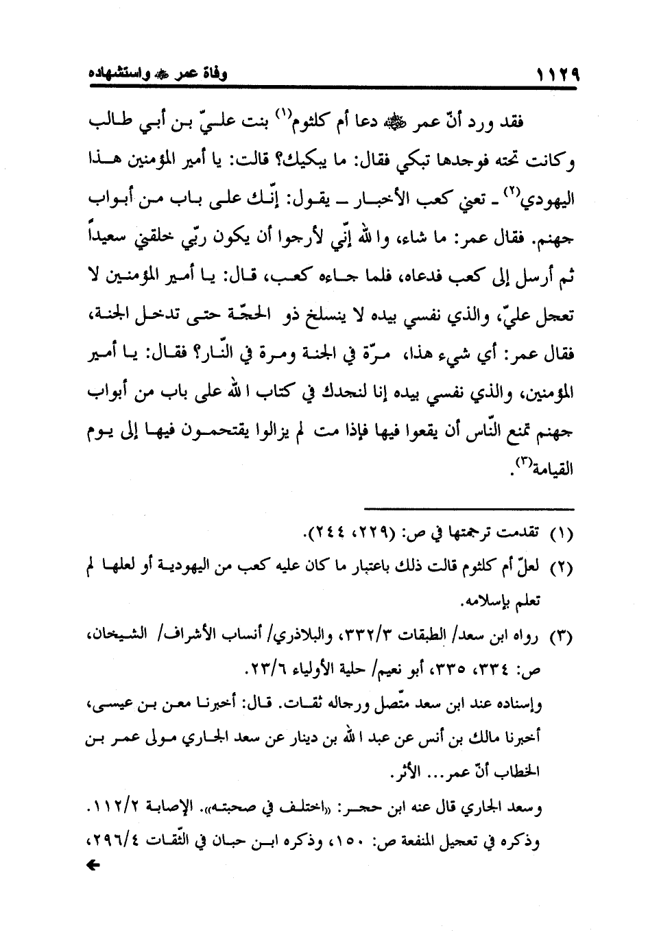 2 لعلّ أم كلثوم قالت ذلك باعتبار ما كان عليه كعب من اليهودية أو لعلها لم تعلم بإسلامه.