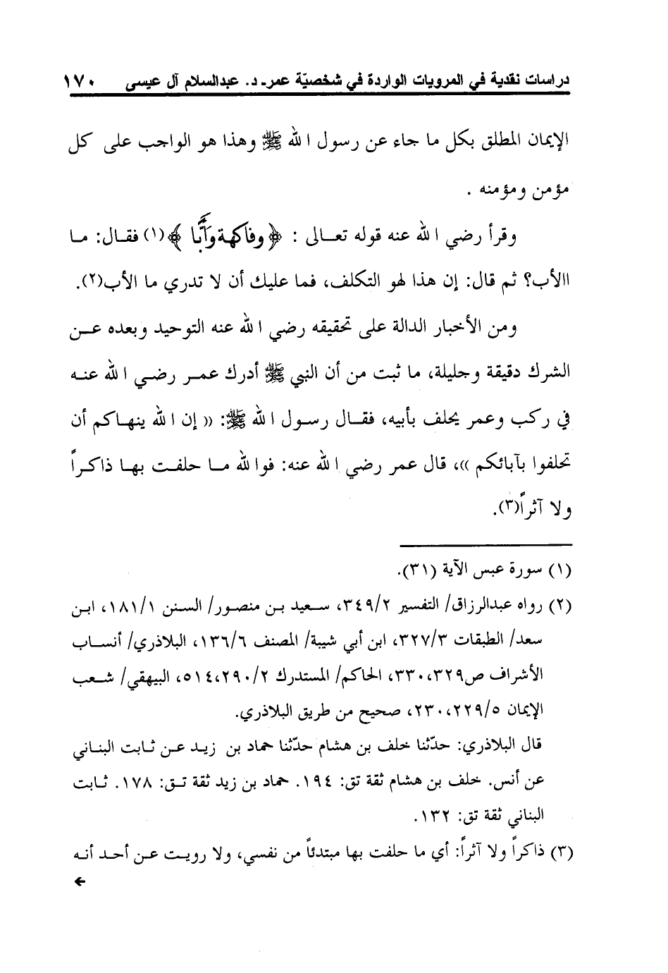 2 رواه عبد الرزاق/ التفسير 2/349، سعيد بن منصور/ السنن 1/181، ابن سعد/ الطبقات 3/327، ابن أبي شيبة/ المصنف 6/136، البلاذري/ أنساب الأشراف ص329،330، الحاكم/ المستدرك 2/290،514، البيهقي/ شعب الإيمان 5/229،230، صحيح من طريق البلاذري.