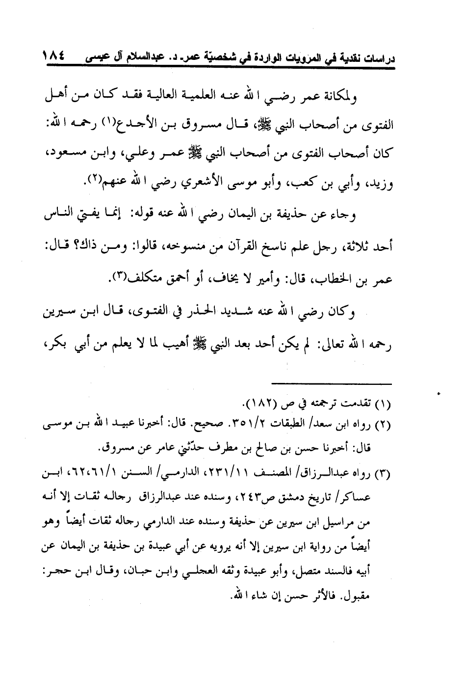 2 رواه ابن سعد/ الطبقات 2/351. صحيح. قال: أخبرنا عبيد الله بن موسى قال: أخبرنا حسن بن صالح بن مطرف حدّثني عامر عن مسروق.