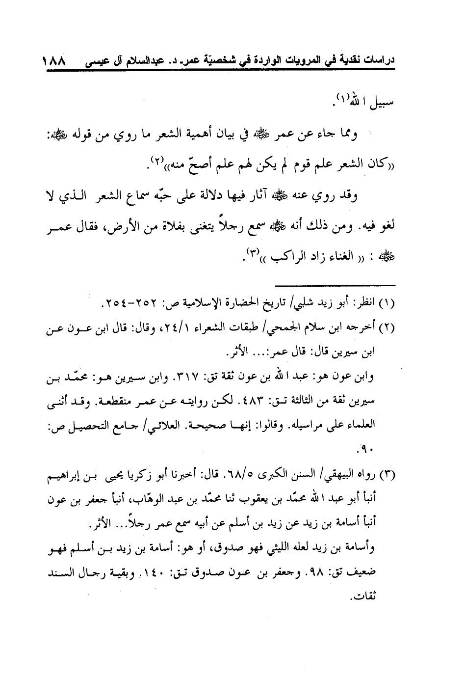 3 رواه البيهقي/ السنن الكبرى 5/68. قال: أخبرنا أبو زكريا يحيى بن إبراهيم أنبأ أبو عبد الله محمّد بن يعقوب ثنا محمّد بن عبد الوهّاب، أنبأ جعفر بن عون أنبأ أسامة بن زيد عن زيد بن أسلم عن أبيه سمع عمر رجلاً ... الأثر.