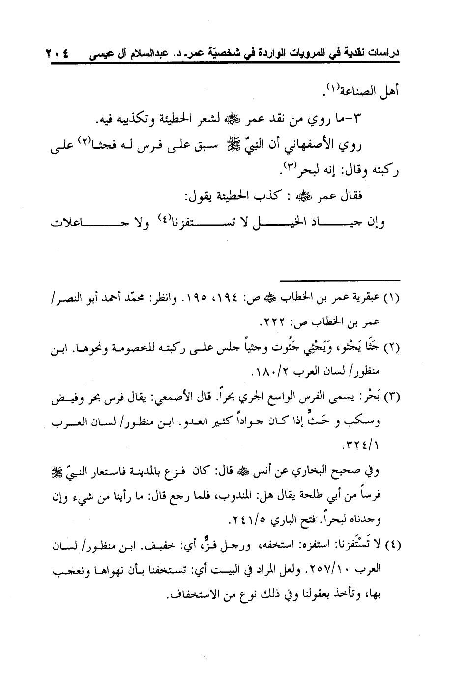 3- ما روي من نقد عمر رضي الله عنه لشعر الحطيئة وتكذيبه فيه.