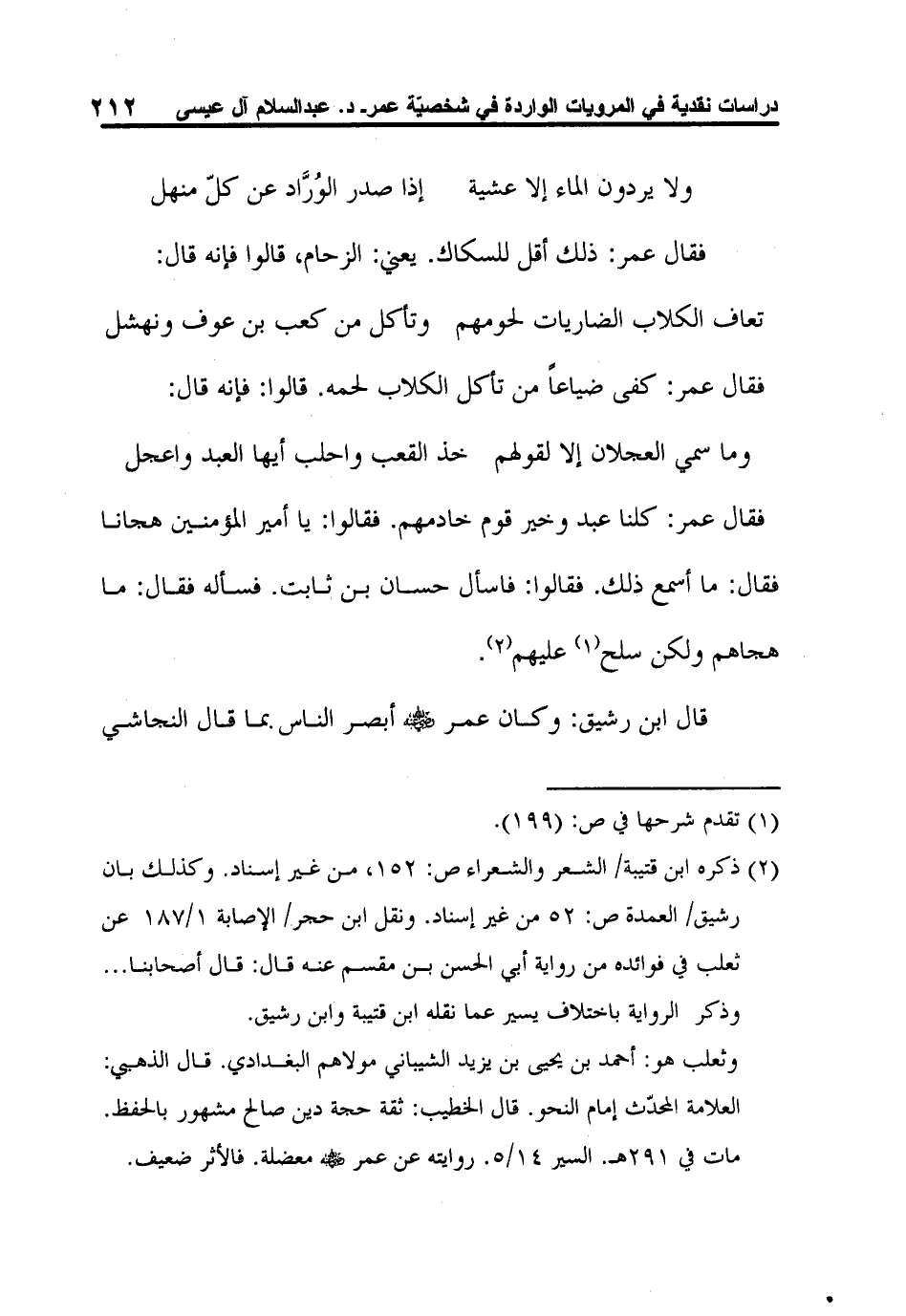 قال ابن رشيق: وكان عمر رضي الله عنه أبصر الناس بما قال النجاشي