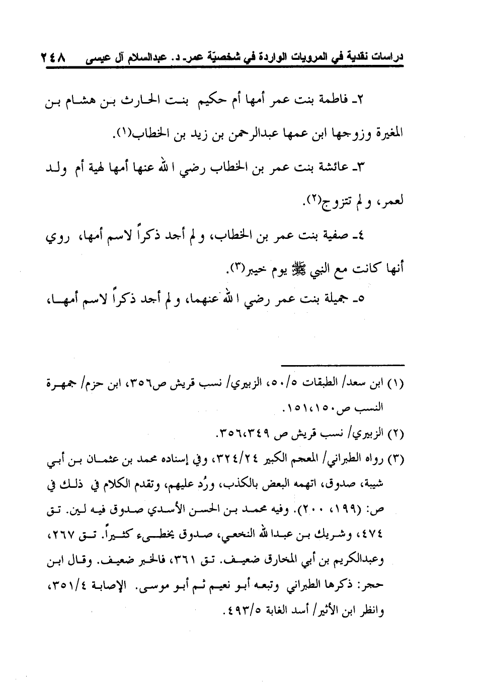 3- عائشة بنت عمر بن الخطاب رضي الله عنها أمها لهية أم ولد لعمر، ولم تتزوج2.