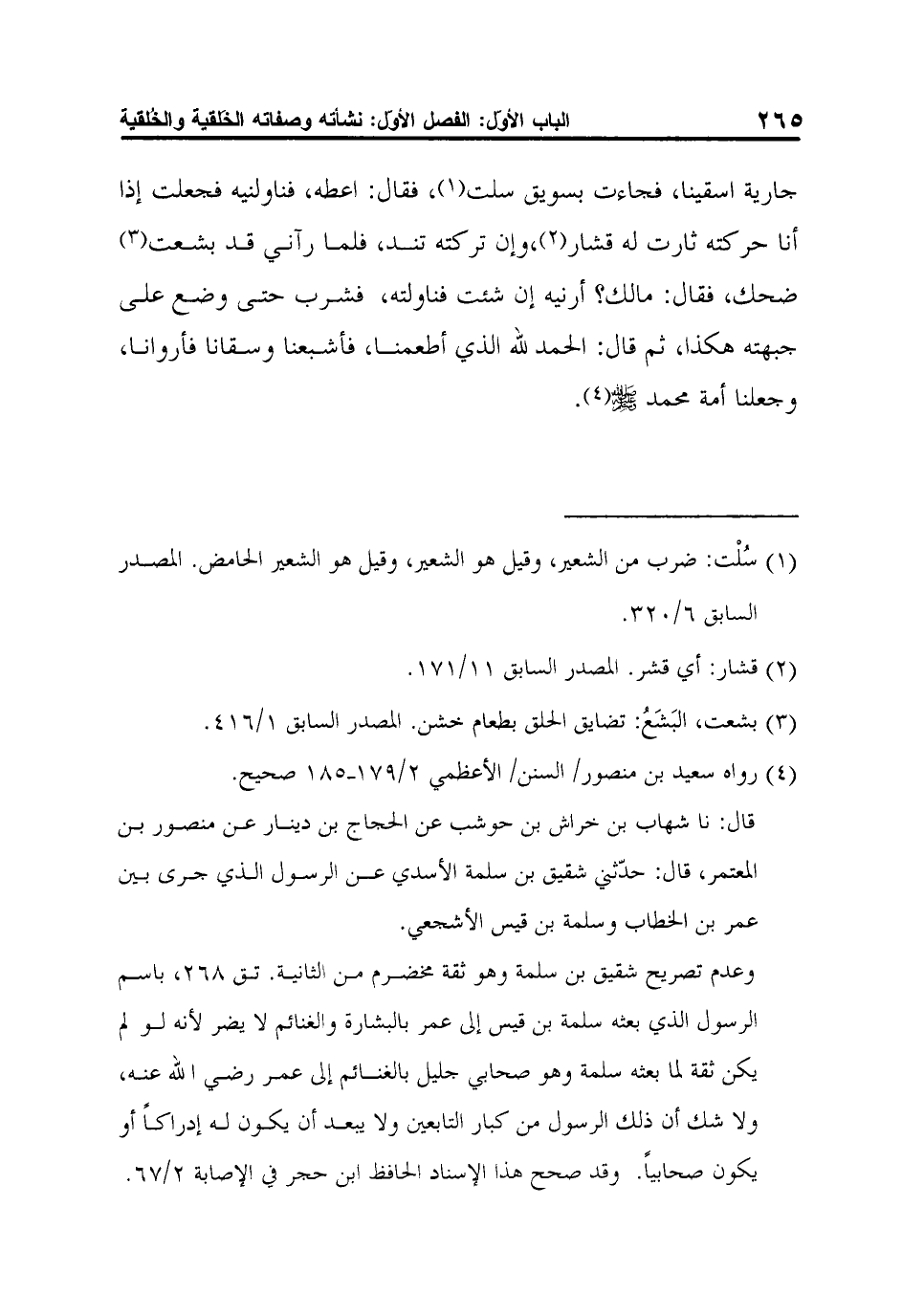قال: نا شهاب بن خراش بن حوشب عن الحجاج بن دينار عن منصور بن المعتمر، قال: حدّثني شقيق بن سلمة الأسدي عن الرسول الذي جرى بين عمر بن الخطاب وسلمة بن قيس الأشجعي.