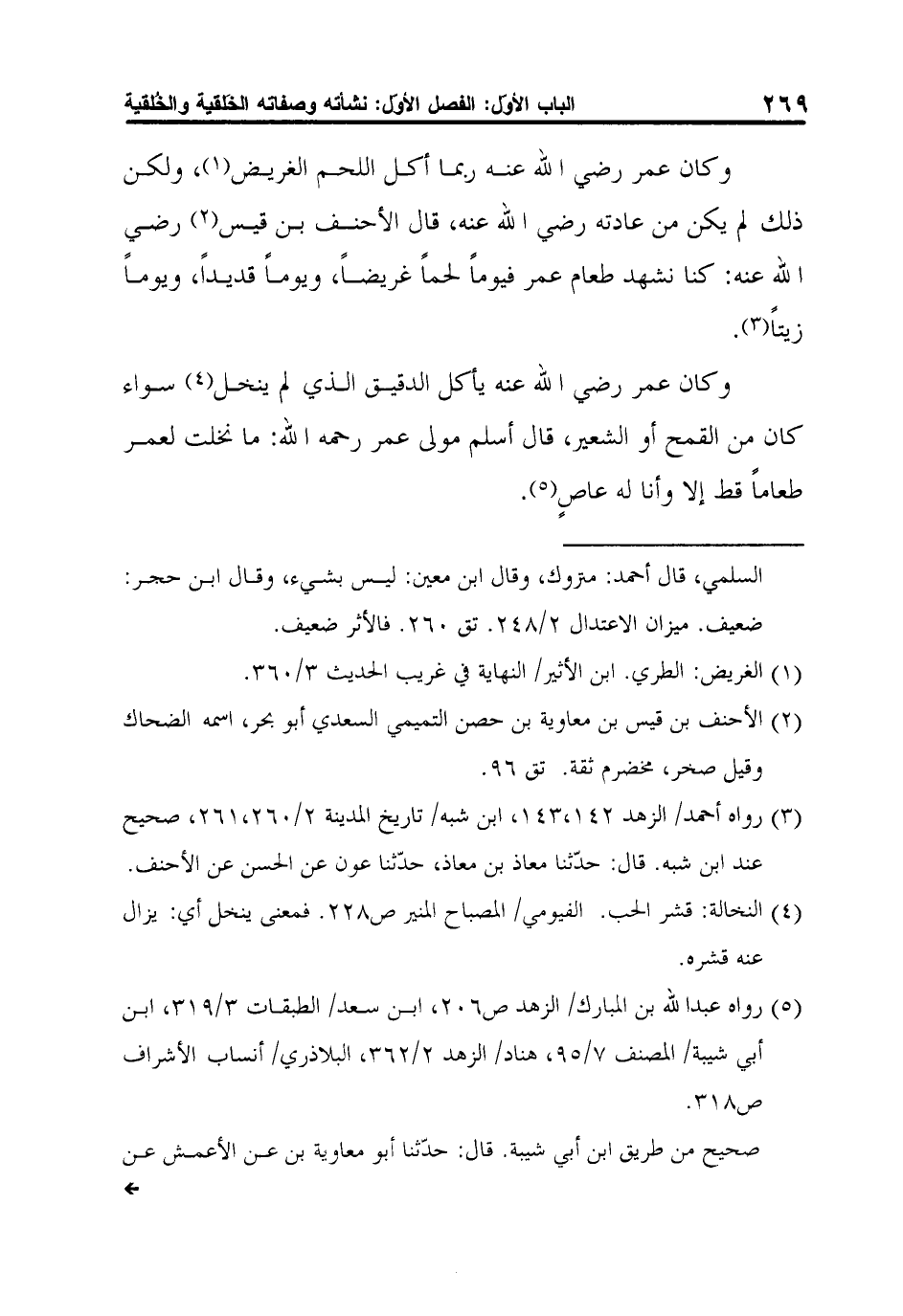 5 رواه عبد الله بن المبارك/ الزهد ص206، ابن سعد/ الطبقات 3/319، ابن أبي شيبة/ المصنف 7/95، هناد/ الزهد 2/362، البلاذري/ أنساب الأشراف ص318.