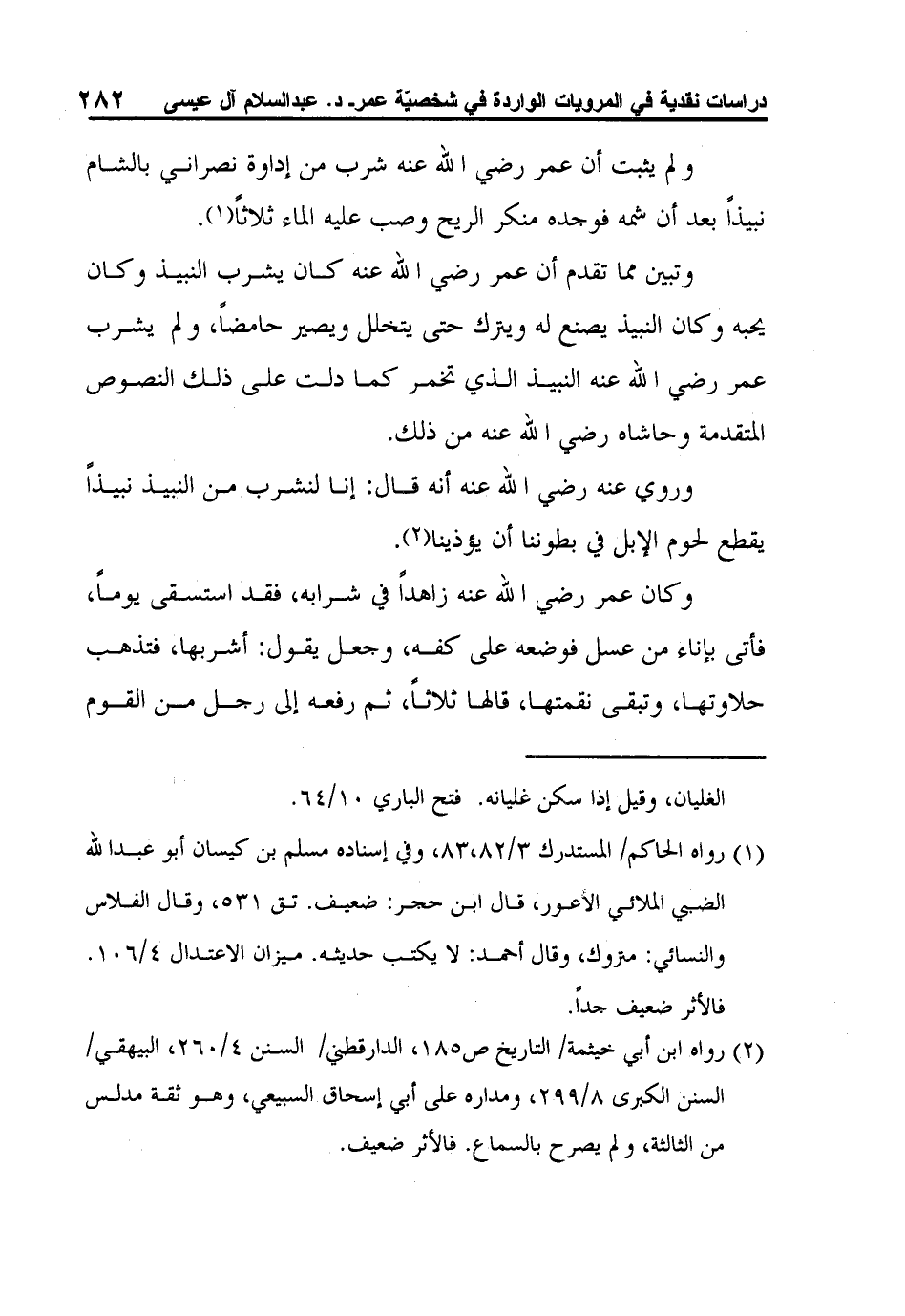 2 رواه ابن أبي خيثمة/ التاريخ ص185، الدارقطني/ السنن 4/260، البيهقي/ السنن الكبرى 8/299، ومداره على أبي إسحاق السبيعي، وهو ثقة مدلس من الثالثة، ولم يصرح بالسماع. فالأثر ضعيف.